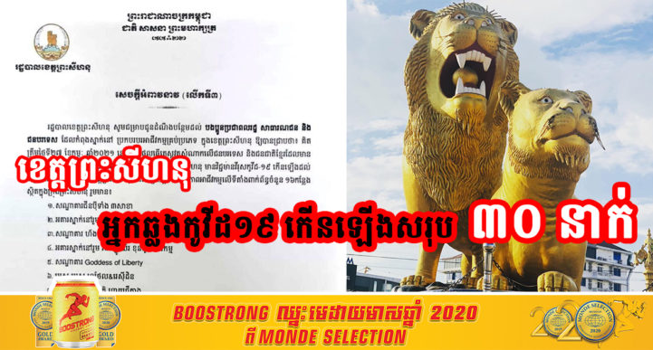 រដ្ឋបាលខេត្តព្រះសីហនុប្រកាសថា គិតមកត្រឹមយប់ថ្ងៃ២៧កុម្ភៈ២០២១ លទ្ធផលធ្វើតេស្ត វត្ថុសំណាកលើជនបរទេសនិងជនជាតិខ្មែរ ពាក់ពន្ធ័ព្រឹត្តិការណ៍សហគមន៍២០កុម្ភៈ ក្នុងខេត្តព្រះសីហនុ មានវិជ្ជមានកូវីដ១៩ កើនដល់៣០នាក់ហើយ ក្នុងនោះរដ្ឋបាលខេត្តបានបិទផ្អាកបណ្តោះអាសន្នតាមទីតាំងអាជីវកម្មដែលពាក់ពន្ធ័ចំនួន១៦កន្លែង និងមានទីតាំងអាជីវកម្មចំនួន១០កន្លែងទៀតបានស្មគ្រចិត្តបិទផ្អាកជាបណ្តោះអាសន្នដោយខ្លួនឯង។ រដ្ឋបាលខេត្តព្រះសីហនុ បានអំពាវនាវជាថ្មីម្តងទៀតឲ្យពលរដ្ឋក្នុងខេត្តបង្កើនការប្រុងប្រយត្ន័ចូលរួមការពារជំងឺកូវីដ១៩ជាចាំបាច់៕