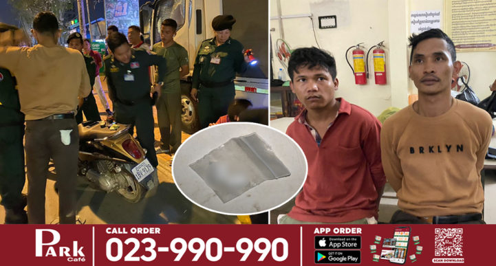រាជធានីភ្នំពេញ ៖ កម្លាំងនគរបាលខណ្ឌមានជ័យ ឃាត់ខ្លួនជនសង្ស័យ២នាក់ លាក់ទុកគ្រឿងញៀន២កញ្ចប់ជាប់ខ្លួន ជិះម៉ូតូ Scoopy ឌុបគ្នាចូលគោលដៅត្រួតពិនិត្យរឹតបន្តឹងច្បាប់ចរាចរណ៍ផ្លូវគោកថ្មី ហើយបោះចោលតាមផ្លូវ ពេលនោះសមត្ថកិច្ចឃើញក៏ចាប់ឃាត់ខ្លួនបញ្ជូនទៅស្នាក់ការប៉ុស្តិ៍ដើម្បីសាកសួរភ្លាមៗ ។ ការឃាត់ខ្លួនជនសង្ស័យក្នុងគោលដៅអនុវត្តច្បាប់ចរាចរណ៍ខាងលើនេះធ្វើឡើង កាលពីវេលាម៉ោង០៩:៤៥នាទីយប់ ថ្ងៃទី១៧ ខែកុម្ភៈ ឆ្នាំ២០២១នេះ នៅចំណុចមុខស្នាក់ការប៉ុស្តិ៍ចាក់អង្រែក្រោម ផ្លូវជាតិលេខ២ ស្ថិតក្នុងភូមិទួលរកា១ សង្កាត់ចាក់អង្រែក្រោម ខណ្ឌមានជ័យ រាជធានីភ្នំពេញ ។ ជនសង្ស័យដែលឃាត់ខ្លួនបានទាំងពីរនាក់ខាងលើ ពុំទាន់ស្គាល់អត្តសញ្ញាណនៅឡើយ ។ សមត្ថកិច្ចបានដកហូតវត្ថុតាងរួមមាន ៖ ក្រាមពណ៌សថ្លាសង្ស័យជាគ្រឿងញៀនចំនួន២កញ្ចប់តូច, ម៉ូតូ ០១គ្រឿង ម៉ាកហុងដាស្គូពី ពណ៌ខ្មៅ ពាក់ស្លាកលេខភ្នំពេញ