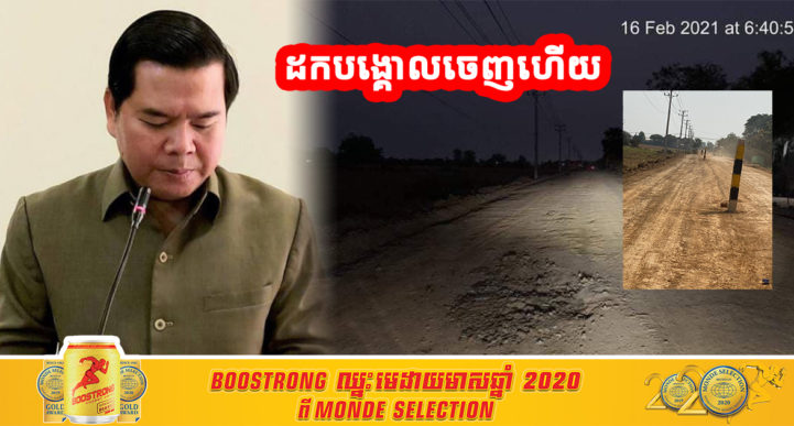 (បាត់ដំបង)៖ បន្ទាប់ពីមានការរិះគន់ខ្លាំង រឿងលោក ឆាយ ម៉ាទីណាល់ អភិបាលរងខេត្តបាត់ដំបង យកបង្គោលថ្មទៅបោះនៅកណ្ដាលផ្លូវដោយសំអាងថា អាជ្ញាធរពង្រីកផ្លូវចូលដីគាត់ ពេលនេះគាត់បានទៅដកបង្គោលដែលដាំកណ្ដាលផ្លូវចេញវិញហេីយនៅយប់ថ្ងៃទី ១៦ ខែ កុម្ភៈ ឆ្នាំ ២០២១ នេះ ។ គួរបញ្ជាក់ថា លោក ឆាយ ម៉ាទីណាល់ អភិបាលរងខេត្តបាត់ដំបង យកបង្គោលថ្មទៅបោះនៅកណ្ដាលផ្លូវដោយសំអាងថា អាជ្ញាធរពង្រីកផ្លូវចូលដីគាត់។ លោកអភិបាលរងខេត្តរូបនេះ បានបញ្ជាអោយគេយកបង្គោលថ្មធំៗមកជីកដីដាំចូលដីផ្លូវអស់ជិត៣ម៉ែត្រដោយគាត់សំអាងថា ការធ្វើផ្លូវខាងលើគឺចូលដីកម្មសិទ្ធិរបស់គាត់។ លោកមេភូមិបានបន្តថា ការធ្វើផ្លូវនេះ មិនដើម្បីបំរើប្រយោជន៍គាត់ឡើយ គឺប្រយោជន៏ជាតិ បំរើសាធារណៈ ធ្វើអោយអ្នកធ្វើដំណើរងាយស្រួល ដល់តែគេយកបង្គោលថ្មមកបោះនៅកណ្ដាលផ្លូវអញ្ចឹង ពេលមានគ្រោះថ្នាក់