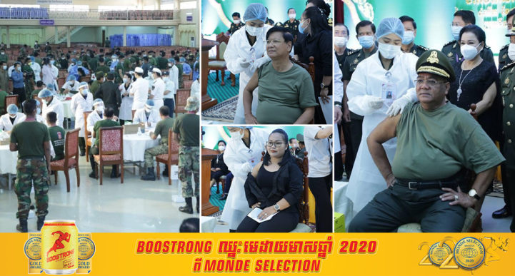 យោងតាមការចុះផ្សាយនៅលើទំព័រហ្វេសប៊ុក ទូរទស្សន៍ជាតិកម្ពុជា បានឲ្យដឹងថា ពិធីចាក់វ៉ាក់សាំងបានប្រព្រឹត្តទៅនៅព្រឹកថ្ងៃទី ១៥ ខែកុម្ភៈ ឆ្នាំ ២០២១ នាបរិវេណបញ្ជាការដ្ឋានអង្គរក្សក្រុងតាខ្មៅ ខេត្តកណ្ដាល ក្រោមអធិបតីភាព សម្ដេចពិជ័យសេនា ទៀ បាញ់ ឧបនាយករដ្ឋមន្ដ្រី រដ្ឋមន្ដ្រីក្រសួងការពារជាតិ ដែលអមដំណើរដោយ ឯកឧត្តមនាយឧត្តមសេនីយ៍ នាង ផាត រដ្ឋលេខាធិការក្រសួងការពារជាតិ ឯកឧត្តមនាយឧត្តមសេនីយ៍កិត្តិបណ្ឌិត ហ៉ីង ប៊ុនហៀង អគ្គមេបញ្ជាការរង និងជាមេបញ្ជាការ បញ្ជាការដ្ឋានអង្គរក្ស ព្រមទាំងនាយទាហានជាន់ខ្ពស់ជាច្រើនរូបទៀតផងដែរ។ សូមបញ្ជាក់ថា កាលពីថ្ងៃ១០ ខែកុម្ភៈ ឆ្នាំ២០២១ ថ្នាក់ដឹកនាំមួយចំនួនរបស់កម្ពុជា កងទ័ព