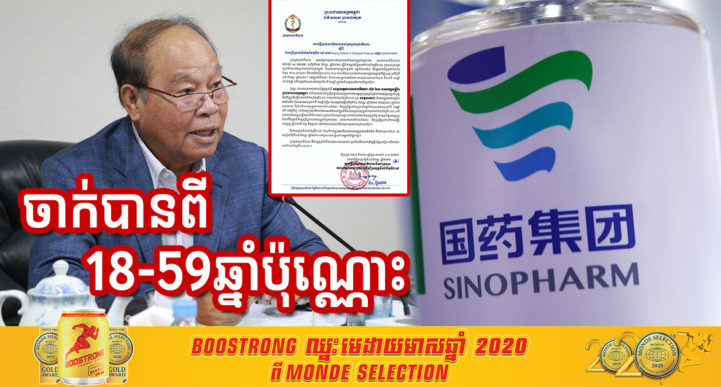 យោងតាមការបញ្ជាក់ពីក្រសួងសុខាភិបាល បានឲ្យដឹងថា ដោយយោងតាមលិខិតលេខ ESY/EC no: 003/2021 ចុះថ្ងៃទី០៣ ខែកុម្ភៈ ឆ្នាំ២០២១ ស្តីពីការផ្តល់ជំនួយវ៉ាក់សាំងកូវីដ១៩ ជូនដល់ក្រសួងសុខាភិបាលនៃព្រះរាជាណាចក្រកម្ពុជា ដែលមានការបញ្ជាក់ជូនថា រដ្ឋាភិបាលចិន នឹងផ្តល់ជាជំនួយវ៉ាក់សាំងចំនួន ៣០ម៉ឺនដូស និងសេរ៉ាំងចំនួន ៣០០.៨០០ ដែលនឹងមកដល់អាកាសយានដ្ឋានអន្តរជាតិភ្នំពេញ នៅថ្ងៃទី០៧ ខែកុម្ភៈ ឆ្នាំ២០២១។ នៅក្នុងលិខិតនេះ ក៏មានការបញ្ជាក់ផងដែរថា អាយុដែលអាចចាក់បាន គឺមានពី ១៨ឆ្នាំ ទៅ៥៩ឆ្នាំ ហើយអ្នកដែលមានអាយុលើសពី៦០ឆ្នាំ ត្រូវរងចាំលទ្ធផលនៃការសិក្សាសិន។ ដូច្នេះ ដោយមានការឯកភាពដ៏ខ្ពង់ខ្ពស់ពី សម្តេចអគ្គមហាសេនាបតីតេជោ ហ៊ុន សែន