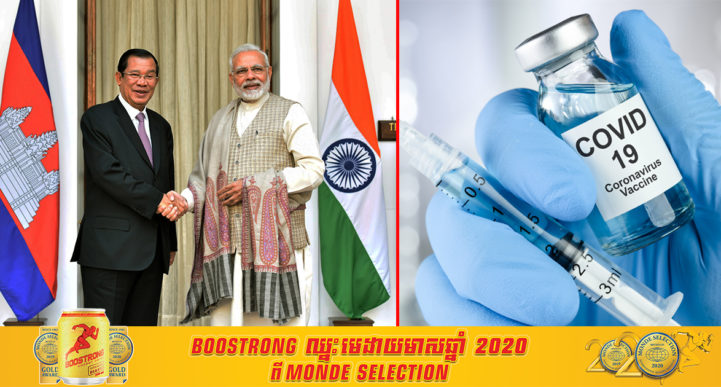 យោងតាមការចុះផ្សាយរបស់ ក្រសួងព័ត៌មាន បានឲ្យដឹងថា ប្រទេសឥណ្ឌា បានសម្រេចផ្តល់វ៉ាក់សាំងកូវីដ-១៩ ចំនួន ១០០ ០០០ដូស ជូនដល់ប្រទេសកម្ពុជា។ នេះបើតាមសេចក្តីប្រកាសព័ត៌មាន របស់ស្ថានទូតឥណ្ឌា ប្រចាំព្រះរាជាណាចក្រកម្ពុជា ដែលចេញផ្សាយនារសៀលថ្ងៃទី០៦ ខែកុម្ភៈ ឆ្នាំ២០២១នេះ។ សេចក្តីប្រកាសព័ត៌មាន បានបញ្ជាក់ថា ៖ «ស្ថានទូតឥណ្ឌានៅភ្នំពេញ មានសេចក្តីរីករាយ និងសូមជម្រាបជូនថា រដ្ឋាភិបាលឥណ្ឌាបានយល់ព្រមក្នុងការផ្គត់ផ្គង់វ៉ាក់សាំងកូវីដ-១៩ ចំនួនមួយសែនដូស ដល់ព្រះរាជាណាចក្រកម្ពុជាជាលក្ខណៈបន្ទាន់។ នេះជាការឆ្លើយតបទៅនឹងសំណើរបស់ សម្តេចនាយករដ្ឋមន្រ្តី ហ៊ុន សែន ចំពោះឯកឧត្តម Shri Narendra Modi (នាយករដ្ឋមន្ត្រីឥណ្ឌា) សម្រាប់ការស្នើសុំជំនួយក្នុងការផ្គត់ផ្គង់វ៉ាក់សាំងការពារវីរុសកូវីដ-១៩»។