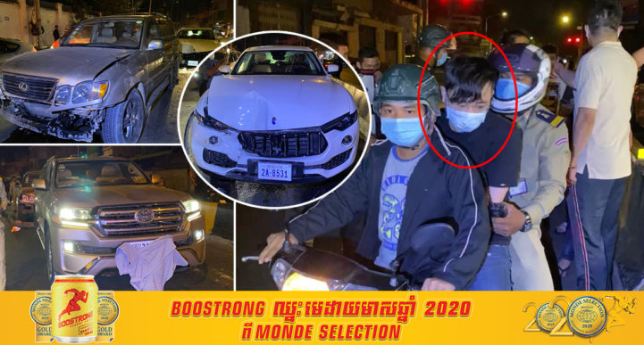 រាជធានីភ្នំពេញ៖ បុរសជនជាតិចិនម្នាក់ចេញពីហូបចុកមកពីណាមិនដឹង បានបើករថយន្តស៊េរីទំនើបម៉ាក MASERATI ទាំងស្រវឹងស្រា ក្នុងល្បឿនលឿន ទៅបុកពីក្រោយរថយន្ត LEXUS 470 ពេញទំហឹង និងរុញទៅបុកបន្តកន្ទុយរថយន្ត LAND CRUISER ស៊េរីទំនើបមួយគ្រឿង បណ្ដាលឲ្យរងការខូចខាតយ៉ាងដំណំ បង្កការភ្ញាក់ផ្អើលឡើងដល់សមត្ថកិច្ចប៉ុស្តិ៍ទន្លេបាសាក់ ចុះជួយអន្តរាគមន៍ភ្លាមៗ។ ហេតុការណ៍គ្រោះថ្នាក់ចរាចរណ៍នេះបានកើតឡើងកាលពីវេលាម៉ោង០១៖១០នាទីយប់រំលងអធ្រាត្រ ឈានចូលថ្ងៃទី០៤ ខែកុម្ភៈ ឆ្នាំ២០២១នេះ នៅចំណុចស្តុបចំការមន ផ្លូវសុធារស កែងផ្លូវព្រះនរោត្តម ក្នុងសង្កាត់ទន្លេបាសាក់ ខណ្ឌចំការមន រាជធានីភ្នំពេញ។ សាក្សីដែលឃើញហេតុការណ៍ផ្ទាល់បានរៀបរាប់ប្រាប់ក្រុមការងារខ្មែរណូតថា នៅពេលកើតហេតុ គេឃើញមានរថយន្តពីរគ្រឿង មានរថយន្តម៉ាកឡង់គ្រីស័រ LAND CRUISER ពណ៌ទឹកមាស