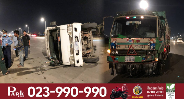 ភ្ភ្នំពេញ៖ រថយន្តយីឌុបមួយគ្រឿង បើកបរដោយបុរសម្នាក់ទំនងស្រវឹងស្រាក្នុងល្បឿនលឿន និងមិនប្រយ័ត្ន បានជ្រុលទៅបុករថយន្តដឹកទឹកកកពីក្រោយពេញទំហឹង បណ្ដាលឲ្យរថយន្តដឹកទឹកកកក្រឡាប់ផ្ងារជើង មួយចំហៀង បង្កការភ្ញាក់ផ្អើលកាលពីវេលាម៉ោងជិត៩យប់ ថ្ងៃទី២៦ ខែមករា ឆ្នាំ២០២១ នៅបណ្ដោយផ្លូវ៦០ម៉ែត្រ ត្រង់ចំណុចកែងផ្លូវបេតុងក្រោយផ្សារក្រមួន ក្នុងភូមិព្រែកតាឡុង១ សង្កាត់ចាក់អង្រែក្រោម ខណ្ឌមានជ័យ រាជធានីភ្នំពេញ ។ តាមប្រភពព័ត៌មានពីកន្លែងកើតហេតុ បានឲ្យដឹងថា មុនពេលកើតហេតុ គេបានឃើញ បុរសម្នាក់បានបើករថយន្តឃ្លុបដឹកទឹកកក ម៉ាក KAI FRONTIER ពណ៌ស ពាក់ស្លាកលេខ ភ្នំពេញ 2AJ-1835 បានបើកធ្វើដំណើរតាមបណ្ដោយផ្លូវ៦០ម៉ែត្រ ក្នុងទិសដៅ ពីជើងទៅត្បូង លុះមកដល់ចំនុចកើតហេតុ