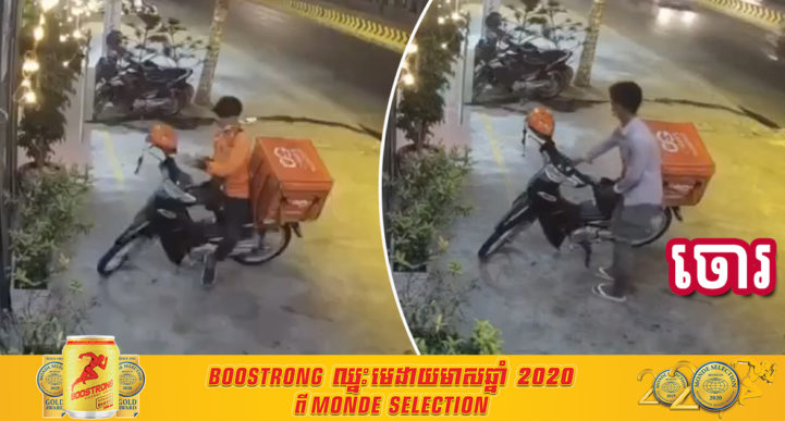 រាជធានីភ្នំពេញ ៖ បុគ្គលិកក្រុមហ៊ុនដឹកជញ្ជូនអាហារ E-Gets ម្នាក់ជិះម៉ូតូដឹកម្ហូបយកអោយភ្ញៀវ ទុកម៉ូតូមុខហាង ភ្លេចដកកូនសោរចេញ រួចយកម្ហូបអោយភ្ញៀវនៅក្នុងហាង ស្រាប់តែលេចមុខជនសង្ស័យ៣នាក់ ជិះម៉ូតូដឹកគ្នាមកទម្លាក់បក្ខពួកម្នាក់ដើរចូលទៅយកជិះគេចខ្លួនបាត់ដោយសុវត្ថិភាព ។ ហេតុការណ៍ចោរលួចម៉ូតូបានសម្រេចនេះ កើតឡើងកាលពីវេលាម៉ោង០៩:២០នាទីយប់ ថ្ងៃទី២៤ ខែមករា ឆ្នាំ២០២១នេះ នៅចំណុចមុខហាងយីហោ លក្ខណៈពិសេសស្លាបមាន់បំពងសាច់ជ្រូកក្បាលគោ ផ្លូវព្រះនរោត្តម ភូមិ១០ សង្កាត់ទន្លេបាសាក់ ខណ្ឌចំការមន រាជធានីភ្នំពេញ ។ ម៉ូតូដែលចោរលួចយកទៅបាត់នោះ ម៉ាកហុងដាឌ្រីម ពណ៌ខ្មៅ ស៊េរីឆ្នាំ២០១២ ឡើងតែម២០១៥ ពាក់ស្លាកលេខភ្នំពេញ 1BG-0484 ជារបស់ជនរងគ្រោះឈ្មោះ ស៊ឹម ស៊ីណេត