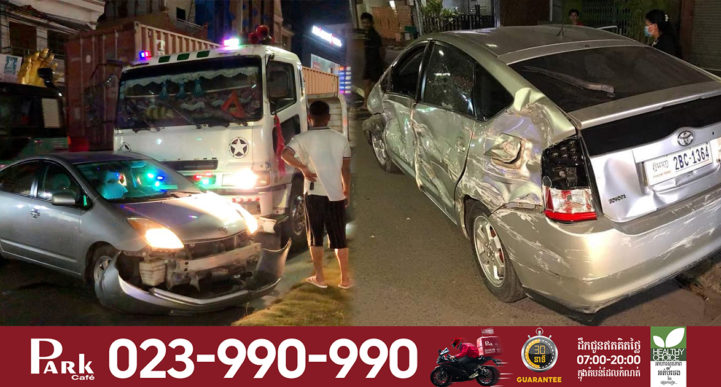 រាជធានីភ្នំពេញ ៖ នារីម្នាក់បើករថយន្តតូយ៉ូតាព្រូស ខឹងបុរសម្នាក់ជាអ្នកបើករថយន្តកុងតឺន័រសណ្ដោងកន្ទុយដឹកដែករាប់តោន ដែលមកបុករថយន្តរបស់នាងពីក្រោយ បណ្ដាលឲ្យខូចខាតបន្តិចបន្តួច ហើយមិនព្រមឈប់ទទួលខុសត្រូវ បានព្យាយាមបើករត់ធ្វើព្រងើយ ទើបនាងខឹងពេកបើករថយន្តដេញតាមទៅឈប់ពីមុខរថយន្តបាំងពីមុខដើម្បីដោះស្រាយ បែរជារថយន្តកុងតឺន័របើកទៅបុកអូសបន្ថែមជាច្រើនម៉ែត្រទៀត បណ្ដាលឲ្យរងការខូចខាតយ៉ាងដំណំ ។ ហេតុការណ៍គ្រោះថ្នាក់ចរាចរណ៍នេះបានបង្កការភ្ញាក់ផ្អើលឡើងកាលពីវេលាម៉ោង១០:០០នាទីយប់ ថ្ងៃទី២៣ ខែមករា ឆ្នាំ២០២១នេះ នៅតាមផ្លូវជាតិលេខ១ ទល់មុខមន្ទីរសម្រាកព្យាបាល ច្បារអំពៅ ស្ថិតនៅភូមិដើមស្លែង សង្កាត់ច្បារអំពៅទី២ ខណ្ឌច្បារអំពៅ ។ សាក្សីដែលឃើញហេតុការណ៍ផ្ទាល់បានរៀបរាប់ប្រាប់ក្រុមការងារខ្មែរណូតយើងថា ដំបូងឡើយគេឃើញនារីម្នាក់ បើករថយន្តមួយគ្រឿង ម៉ាកតូយ៉ូតាព្រូស (Toyota Prius) ពណ៌ទឹកប្រាក់ ពាក់ស្លាកលេខភ្នំពេញ 2BC-1364 បានធ្វើដំណើរតាមផ្លូវជាតិលេខ១ ក្នុងទិសដៅពីកើតទៅលិចស្របទិសគ្នាជាមួយរថយន្តកុងតឺន័រមួយគ្រឿងទៀត