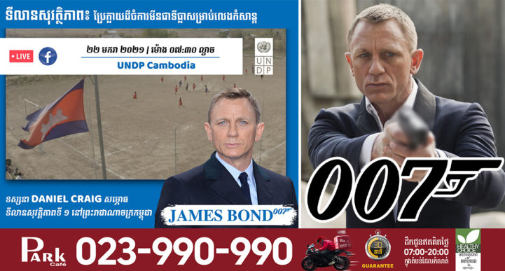 (ភ្នំពេញ)៖ យោងតាមប្រភពព័ត៌មានពី អង្គការ UNDP Cambodia បានឲ្យដឹងថា កំពូលតារាសម្តែង James Bond 007 (Daniel Craig) នឹងចូលរួមសម្ពោធ ទីលានសុវត្ថិភាព ដំបូងគេបង្អស់នៅក្នុងព្រះរាជាណាចក្រកម្ពុជា នៅថ្ងៃទី២២ ខែមករា ឆ្នាំ២០២១ខាងមុខនេះ។ ប្រភពដដែល បានបន្តថា កម្មវិធីនេះ នឹងត្រូវ ផ្សាយផ្ទាល់នៅម៉ោង ០៧ និង៣០ ល្ងាច នៅលើគេហទំព័រ UNDP Cambodia នៅថ្ងៃទី២២ ខែមករា។ UNDP Cambodia បានបញ្ជាក់ថា