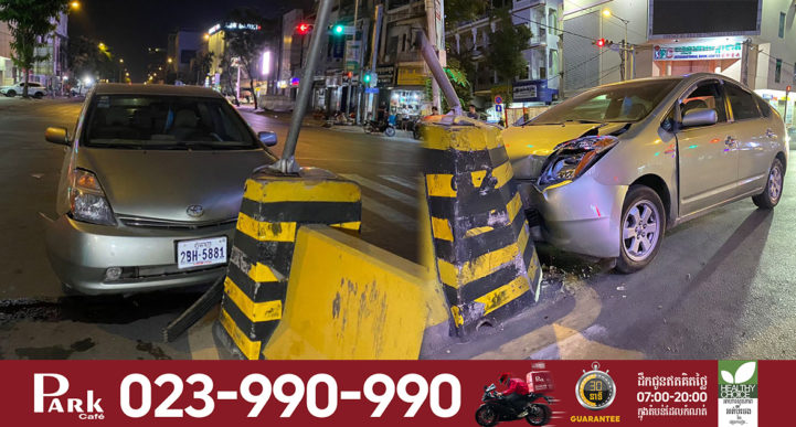 រាជធានីភ្នំពេញ ៖ បុរសជនជាតិចិនម្នាក់ បើកបររថយន្តមួយគ្រឿង ក្នុងល្បឿនយ៉ាងលឿន ទៅបុករបាំងថ្មពុះចែកទ្រូងផ្លូវខ្ទេចមួយកំណាត់មុខ បើកទៅមុខលែងរួច ក៏ហៅកង់បីជិះគេចខ្លួនបាត់ស្រមោល ហេតុការណ៍គ្រោះថ្នាក់ចរាចរណ៍នេះបានកើតឡើងកាលពីវេលាម៉ោង១:៤០នាទីយប់រំលងអាធ្រាត្រ ចូលថ្ងៃទី២០ ខែមករា ឆ្នាំ២០២១នេះ ស្ថិតនៅត្រង់ចំណុចស្តុបផ្សារស៊ីឡឹប ផ្លូវបំបែកជាបួន លើផ្លូវព្រះសីហនុ កែងផ្លូវត្រសក់ផ្អែម(ផ្លូវលេខ៦៣) ក្នុងសង្កាត់ចតុមុខ ខណ្ឌដូនពេញ រាជធានីភ្នំពេញ។ តាមប្រភពព័ត៌មានពីអ្នកឃើញហេតុការណ៍ផ្ទាល់បានប្រាប់អ្នកយកព័ត៌មានខ្មែរណូតដឹងថា មុនពេលកើតហេតុ គេបានឃើញរថយន្តមួយគ្រឿង ម៉ាកតូយ៉ូតាព្រូស (TOYOTA-PRIUS) ពណ៌ប្រផេះ ពាក់ស្លាកលេខភ្នំពេញ 2BH-5881 បើកបរដោយជនជាតិចិនម្នាក់ បានធ្វើដំណើរតាមបណ្ដោយផ្លូវព្រះសីហនុ ទិសដៅពីកើតទៅលិច ក្នុងល្បឿនលឿន មកដល់ចំណុចកើតហេតុ ខ្វះការប្រុងប្រយ័ត្ន ក៏រេចង្កូតទៅបុករបាំងថ្មពុះចែកទ្រូងផ្លូវពេញទំហឹង