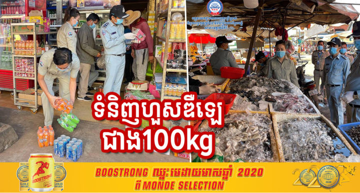 ខេត្តរតនគិរី៖ នៅថ្ងៃអង្គារ ១៤រោច ខែបុស្ស ឆ្នាំជូត ទោស័ក ព.ស.២៥៦៤ ត្រូវនឹងថ្ងៃទី១២ ខែមករា ឆ្នាំ២០២១នេះ មន្ត្រីសាខា ក.ប.ប. ខេត្តរតនគិរី ដោយទទួលបានការសហការពីមន្ត្រីមន្ទីរពាណិជ្ជកម្មខេត្ត និងគណៈកម្មការផ្សារ បានចុះត្រួតពិនិត្យគុណភាពសុវត្ថិភាពម្ហូបអាហារ នៅផ្សារបានលុង ខេត្តរតនគិរី។ គោលដៅសំខាន់នៃការត្រួតពិនិត្យគឺដើម្បីស្រាវជ្រាវទប់ស្កាត់ការចរាចរណ៍ទំនិញខូចគុណភាព ក្លែងបន្លំស្លាកសញ្ញា ផុតកំណត់កាលបរិច្ឆេទប្រើប្រាស់ និងមានសារធាតុគីមីហាមឃាត់។ ក្នុងសកម្មភាពនេះ មន្ត្រីជំនាញ ធ្វើការត្រួតពិនិត្យរកភាពមិនអនុលោមនៅលើសម្បកវេចខ្ចប់ផលិតផលម្ហូបអាហារផងដែរ។ ជាលទ្ធផល មន្ត្រីជំនាញបានរកឃើញទំនិញហួសកាលបរិច្ឆេទប្រើប្រាស់សរុបចំនួន ១០០.២០គីឡូក្រាម មានដូចជា៖ -ទឹកក្រូចដបចំនួន ២៧៩ដប ស្មើនឹង ៩១គីឡូក្រាម -សូដាកំប៉ុងចំនួន