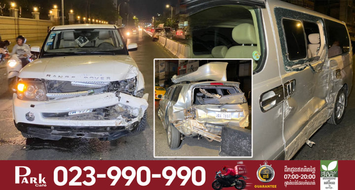 រាជធានីភ្នំពេញ៖ គ្រោះថ្នាក់ចរាចរណ៍មួយបានកើតឡើងដោយ បុរសជនជាតិចិនម្នាក់ស្រវឹងស្រា បើករថយន្ត Ranger Rover មួយគ្រឿង បោះពួយលឿនដូចហោះ ក៏ជ្រុលទៅបុករថយន្ត Highlander ពីក្រោយពេញទំហឹង បណ្ដាលឲ្យខ្ទាតទៅបុករថយន្ត Starex មួយគ្រឿងទៀត រងការខូចខាតយ៉ាងដំណំទាំងបីគ្រឿង តែសំណាងល្អមិនបង្កឲ្យមានមនុស្សណាម្នាក់រងរបួសឡើយ គ្រាន់តែបង្កការភ្ញាក់ផ្អើលដល់អ្នកដំណើរចោមរោមពេញកន្លែងកើតហេតុ។ ហេតុការណ៍គ្រោះថ្នាក់ចរាចរណ៍នេះបានកើតឡើង កាលពីវេលាម៉ោង១០:៣០នាទីយប់ ថ្ងៃទី១ ខែមករា ឆ្នាំ២០២១នេះ នៅតាមផ្លូវព្រះមុនីរ៉េត(២១៧) ខាងត្បូងស្តុបចេនឡា(ស្តុបផ្សារដើមគរ) ១៥០ម៉ែត្រ ទល់មុខភូមិគ្រឹះថៃប៊ុនរ៉ុង ស្ថិតក្នុងសង្កាត់ទំនប់ទឹក ខណ្ឌបឹងកេងកង រាជធានីភ្នំពេញ។ តាមប្រភពព័ត៌មានពីកន្លែងកើតហេតុបានឲ្យក្រុមការងារខ្មែរណូតដឹងថា មុនកើតហេតុ គេឃើញរថយន្តមួយគ្រឿង ម៉ាក Highlander