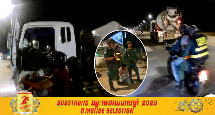 រាជធានីភ្នំពេញ ៖ កម្លាំងអន្តរាគមន៍ពិសេសរបស់អធិការដ្ឋានខណ្ឌមានជ័យ បានផ្ទុះអាវុធបាញ់មេឃមួយគ្រាប់ ទើបចាប់ឃាត់តៃកុងរថយន្តបាន បន្ទាប់ពីប្រដេញតាមឃាត់រថយន្តក្រឡុកស៊ីម៉ងត៍ធុនធំមួយគ្រឿង ដែលបើកបុកកៀរម៉ូតូមន្ត្រីជាប់កិច្ចសន្យាម្នាក់ បណ្ដាលឲ្យដួលរងរបួស មិនព្រមឈប់ដោះស្រាយទេ បែរជាបើករត់គេខ្លួនរហូតដល់សមត្ថកិច្ចដាក់ម៉ូតូបាំងពីមុខហើយមិនចង់ឈប់ទៀត ទាល់តែសមត្ថកិច្ចផ្ទុះអាវុធទើបឃាត់បាន។ ហេតុការណ៍គ្រោះថ្នាក់ចរាចរណ៍នេះបានកើតឡើងជិត៨យប់ ថ្ងៃទី២៩ ខែធ្នូ ឆ្នាំ២០២០នេះ នៅចំណុចអតីតស្ថានីយ៍ប្រេងឥន្ធនៈសូគីម៉ិច (ច្រមុះជ្រូកក្បាលថ្នល់) ផ្លូវ២៧១ សង្កាត់ផ្សារដើមថ្កូវ ខណ្ឌចំការមន រាជធានីភ្នំពេញ ។ បើតាមសម្ដីកម្លាំងអន្តរាគមន៍ពិសេសនៃអធិការដ្ឋាននគរបាលខណ្ឌមានជ័យ បានប្រាប់អោយដឹងថា នៅមុនពេលកើតហេតុ បន្ទាប់ពីទទួលបានដំណឹងតាមរយៈវិទ្យុទាក់ទង បោះដៃប្រាប់អោយជួយស្ទាក់ឃាត់រថយន្តក្រឡុកស៊ីម៉ងត៍ធុនធំមួយគ្រឿង ពណ៌ស ពាក់ស្លាកលេខភ្នំពេញ 5A-1001 ដែលបើកបរបុកបុកកៀរម៉ូតូមន្ត្រីជាប់កិច្ចសន្យាម្នាក់ នៅចំណុចខាងកើតខាងលើ បណ្ដាលឲ្យដួលរងរបួស ហើយបានបើករត់គេខ្លួនតាមមហាវិថីសម្ដេចអគ្គមហាសេនាបតីតេជោហ៊ុនសែន