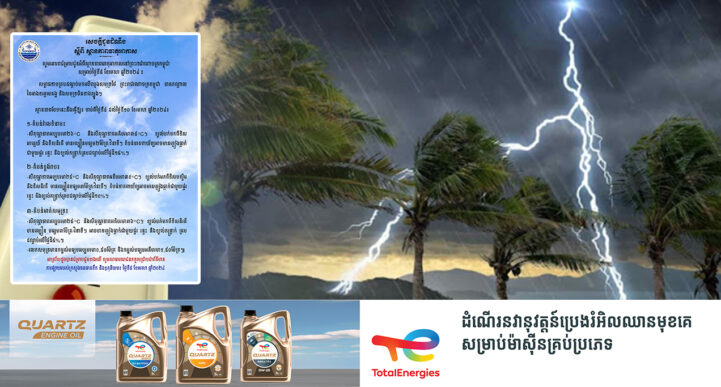 រាជធានីភ្នំពេញ៖ យោងតាមការចុះផ្សាយរបស់ ក្រសួងធនធានទឹក និងឧតុនិយម បានចេញសេចក្ដីជូនដំណឹង អំពីស្ថានភាពធាតុអាកាសនៅព្រះរាជាណាចក្រកម្ពុជាសម្រាប់ថ្ងៃទី៨ ខែមេសា ឆ្នាំ២០២៤។ ក្រសួងធនធានទឹក បានឱ្យដឹងថា សម្ពាធទាបគ្របដណ្ដប់មកលើឈូងសមុទ្រថៃ ព្រះរាជាណាចក្រកម្ពុជា ភាគកណ្តាលនៃអាងទន្លេមេគង្គ និងសមុទ្រចិនខាងត្បូង។ ស្ថានភាពបែបនេះនឹងធ្វើឱ្យ ចាប់ពីថ្ងៃទី៨ ដល់ថ្ងៃទី១០ ខែមេសាឆ្នាំ២០២៤៖ ១. តំបន់វាលទំនាប៖ -សីតុណ្ហភាពអប្បបរមា២៦°C និងសីតុណ្ហភាពអតិបរមា៣៨°C។ ខ្យល់បក់មកពីទិសអាគ្នេយ៍ និងទិសនិរតី មានល្បឿនមធ្យម២ម៉ែត្រ/វិនាទី។ តំបន់ភាគពាយ័ព្យអាចមានភ្លៀងធ្លាក់ជាមួយផ្គរ រន្ទះ និងខ្យល់កន្ត្រាក់គ្របដណ្ដប់លើផ្ទៃដី១៥%។ ២.តំបន់ខ្ពង់រាប៖ -សីតុណ្ហភាពអប្បបរមា២៥°C និងសីតុណ្ហភាពអតិបរមា៣៩°C។ ខ្យល់បក់មកពីទិសបស្ចិម និងទិសនិរតី មានល្បឿនមធ្យម៣ម៉ែត្រ/វិនាទី។
