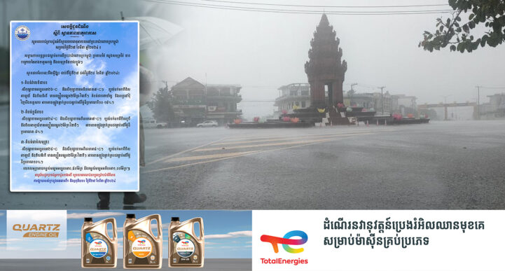 រាជធានីភ្នំពេញ៖ យោងតាមការចុះផ្សាយរបស់ ក្រសួងធនធានទឹក និងឧតុនិយម បានចេញសេចក្ដីជូនដំណឹង អំពីស្ថានភាពធាតុអាកាសនៅព្រះរាជាណាចក្រកម្ពុជាសម្រាប់ថ្ងៃទី២៧ ខែមីនា ឆ្នាំ២០២៤។ ក្រសួងធនធានទឹក បានឱ្យដឹងថា សម្ពាធទាបបន្តគ្របដណ្ដប់មកលើព្រះរាជាណាចក្រកម្ពុជា ប្រទេសថៃ ឈូងសមុទ្រថៃ ភាគកណ្តាលនៃអាងទន្លេមេគង្គ និងសមុទ្រចិនខាងត្បូង។ ស្ថានភាពបែបនេះនឹងធ្វើឱ្យ ចាប់ពីថ្ងៃទី២៧ ដល់ថ្ងៃទី២៩ ខែមីនា ឆ្នាំ២០២៤៖ ១. តំបន់វាលទំនាប៖ -សីតុណ្ហភាពអប្បបរមា២៦°C និងសីតុណ្ហភាពអតិបរមា៣៧°C។ ខ្យល់បក់មកពីទិសអាគ្នេយ៍ និងទិសនិរតី មានល្បឿនមធ្យម២ម៉ែត្រ/វិនាទី។ តំបន់ភាគពាយ័ព្យ និងខេត្តនៅជុំវិញបឹងទន្លេសាប អាចមានភ្លៀងធ្លាក់គ្របដណ្ដប់លើផ្ទៃដីប្រមាណពី១០-១៥%។ ២.តំបន់ខ្ពង់រាប៖ -សីតុណ្ហភាពអប្បបរមា២៤°C និងសីតុណ្ហភាពអតិបរមា៣៧°C។ ខ្យល់បក់មកពីទិសបូព៌
