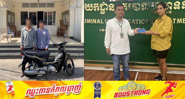 រាជធានីភ្នំពេញ៖ យោងតាមការចុះផ្សាយរបស់ នាយកដ្ឋាននគរបាលព្រហ្មទណ្ឌ បានឱ្យដឹងថា នៅថ្ងៃទី២៧ ខែកុម្ភៈ ឆ្នាំ២០២៤ វេលាម៉ោង១៩៖៣៣នាទី លោកឧត្តមសេនីយ៍ត្រី ប៊ុត វណ្ណារដ្ឋ អនុប្រធាននាយកដ្ឋានទទួលផែន បានដឹកនាំកម្លាំងជំនាញការិយាល័យព្រហ្មទណ្ឌកម្រិតធ្ងន់ ដែលមានលោកវរសេនីយ៍ឯក ញ៉ែម វន នាយការិយាល័យព្រហ្មទណ្ឌកម្រិតធ្ងន់ ដោយមានការចូលរួមសហការពីលោកវរសេនីយ៍ទោ ប៊ុត ស៉ីម៉េង នាយការិយាល័យ ចុះល្បាតតាមផ្លូវលេខ ៥១កែងផ្លូវលេខ២២២ ក្នុងសង្កាត់បឹងរាំង ខណ្ឌដូនពេញ រាជធានីភ្នំពេញ ក៏ប្រទះឃើញជនសង្ស័យ ជិះម៉ូតូចំនួន០១គ្រឿងមានគ្នា ចំនួន០២នាក់ បានធ្វើសកម្មភាពឆក់ទូរស័ព្ទពីនារីជនបរទេស ដែលកំពុងដើរបានសម្រេច។ ភ្លាមនោះកម្លាំងជំនាញការិយាល័យធ្វើការប្រដេញ និងឃាត់ខ្លួនជនសង្ស័យបានទាំង២នាក់ នៅចំណុចផ្លូវសម្តេចតេជោហ៊ុនសែន