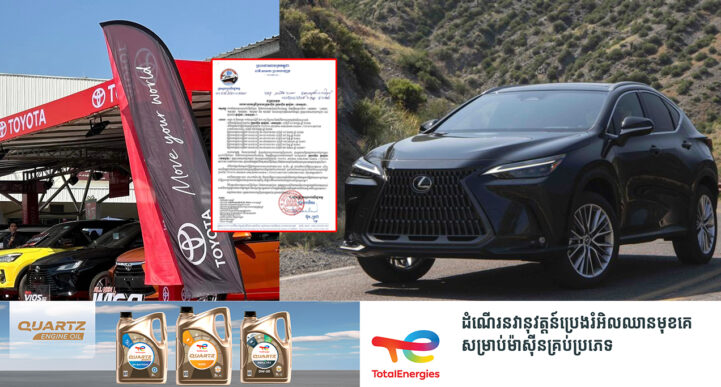 រាជធានីភ្នំពេញ៖ នៅថ្ងៃទី២៧ ខែកុម្ភៈ ឆ្នាំ២០២៤ យោងតាមគណនីហ្វេសប៊ុកផ្លូវការរបស់ ក្រុមហ៊ុន តូយ៉ូតា (ខេមបូឌា) បានប្រកាសថា ក្រុមហ៊ុនតូយ៉ូតា ទទួលបានសិទ្ធិនាំចូល និងចែកចាយផ្តាច់មុខលើយានយន្តម៉ាក 𝐋𝐞𝐱𝐮𝐬 នៅប្រទេសកម្ពុជា។ តាមរយៈខ្លឹមសារបង្ហោះរបស់ ក្រុមហ៊ុន តូយ៉ូតា (ខេមបូឌា) បានចេញសេចក្តីជូនដំណឹង ដល់ សម្តេច ទ្រង់ ឯកឧត្តម អ្នកឧកញ៉ា លោកឧកញ៉ា លោកជំទាវ លោក លោកស្រី និងអតិថិជនទាំងអស់ឱ្យបានជ្រាបថា ក្រសួងពាណិជ្ជកម្មបានឯកភាពកត់ត្រាទទួលស្គាល់សិទ្ធិនាំចូល និងចែកចាយផ្តាច់មុខលើយានយន្ត និងគ្រឿងបន្លាស់ម៉ាក (“𝐋𝐞𝐱𝐮𝐬 𝐋𝐌𝟑𝟓𝟎𝐡”,