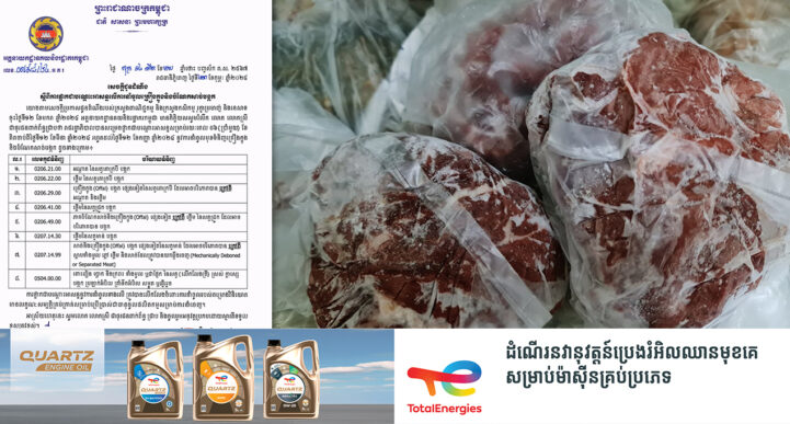 រាជធានីភ្នំពេញ៖ យោងតាមការចុះផ្សាយរបស់ អគ្គនាយកដ្ឋានគយនិងរដ្ឋាករកម្ពុជា បានចេញសេចក្តីជូនដំណឹង ស្តីពីការផ្អាកជាបណ្តោះអាសន្នលើការនាំចូលគ្រឿងក្នុងនិងបំណែកសាច់បង្កក។ យោងតាមសេចក្ដីប្រកាសជូនដំណឹងរបស់ក្រសួងពាណិជ្ជកម្ម និងក្រសួងកសិកម្ម រុក្ខាប្រមាញ់ និងនេសាទ ចុះថ្ងៃទី១២ ខែមករា ឆ្នាំ២០២៤ អគ្គនាយកដ្ឋានគយ និងរដ្ឋាករកម្ពុជា មានកិត្តិយសសូមរំលឹក លោក លោកស្រី ជាធុរជនពាក់ព័ន្ធជ្រាបថា រាជរដ្ឋាភិបាល បានសម្រេចផ្អាកជាបណ្ដោះអាសន្នសម្រាប់រយៈពេល ០៦(ប្រាំមួយ) ខែ គិតចាប់ពីថ្ងៃទី១២ ខែមីនា ឆ្នាំ២០២៤ រហូតដល់ថ្ងៃទី១២ ខែកញ្ញា ឆ្នាំ២០២៤ នូវការនាំចូលមុខទំនិញគ្រឿងក្នុងនិងបំណែកសាច់បង្កក ៕ ប្រភព៖ អគ្គនាយកដ្ឋានគយនិងរដ្ឋាករកម្ពុជា General Department