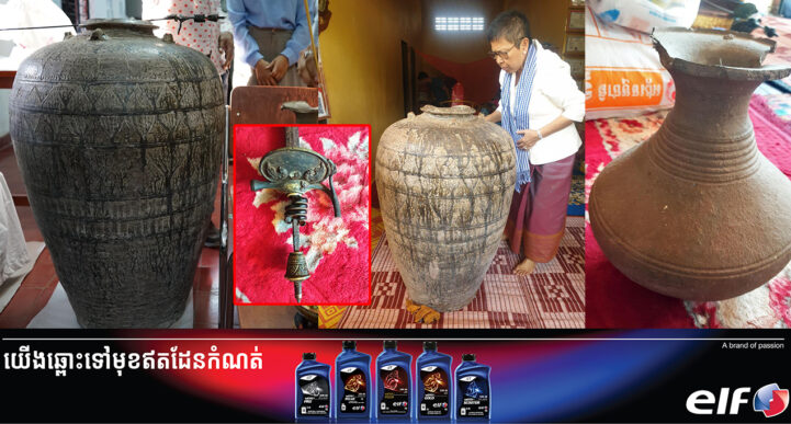 ខេត្តពោធិ៍សាត់៖ យោងតាមការចុះផ្សាយរបស់ ក្រសួងវប្បធម៌ និងវិចិត្រសិល្បៈ បានឱ្យដឹងថា កាលពីព្រឹកថ្ងៃទី២២ ខែកុម្ភៈ ឆ្នាំ២០២៤ លោកជំទាវបណ្ឌិតសភាចារ្យ ភឿង សកុណា រដ្ឋមន្រ្តីក្រសួងវប្បធម៌និងវិចិត្រសិល្បៈ អមដំណើរដោយថ្នាក់ដឹកនាំ មន្ត្រីជំនាញ និង អាជ្ញាធរដែនដី បានអញ្ជើញទៅថ្វាយបង្គំ ព្រះតេជព្រះគុណ សាយ ជីវ័ន ព្រះគ្រូចៅអធិការវត្តព្រះហស្ថក្បាល ដែលស្ថិតនៅក្នុងភូមិព្រះហស្ថក្បាល ឃុំផ្ទះរ៉ុង ស្រុកតាលោសែនជ័យ ខេត្តពោធិ៍សាត់។ ក្នុងឱកាសនោះព្រះអង្គ បានបង្ហាញវត្ថុបុរាណចំនួនបី រួមមាន៖ ១. ក្រឡធំលាបស្រទាប់រលោងពណ៌ត្នោត ជាប្រភេទកម្រ ព្រោះក្រឡនេះមានទំហំធំនិងមានរូបរាងល្អពេញលេញ ដែលមិនធ្លាប់ប្រទះឃើញនាពេលកន្លងមក។ តាមរយៈការវិភាគលើរូបរាង