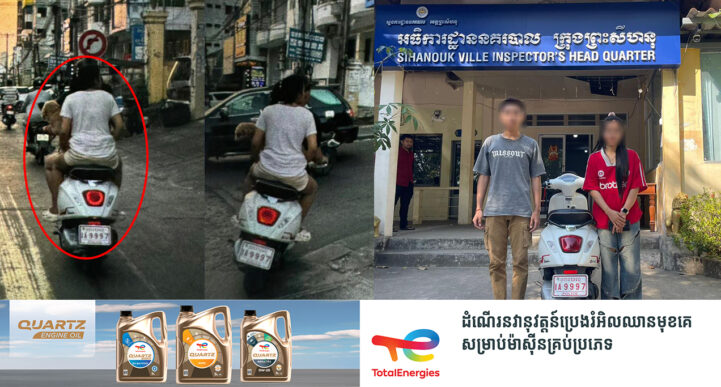 ខេត្តព្រះសីហនុ៖ យោងតាមការចុះផ្សាយរបស់ ស្នងការដ្ឋាននគរបាលខេត្តព្រះសីហនុ បានឱ្យដឹងថា នៅថ្ងៃទី២៣ ខែកុម្ភៈ ឆ្នាំ២០២៤ ក្រោយពីមានការផ្សាយតាមបណ្តាញសង្គមពីជនស៊ីវិល ០២នាក់ ជិះម៉ូតូផ្លាកលេខនគរបាល ថែមទាំងគ្មានពាក់មួកសុត្ថិភាពរួចមក ឯកឧត្តម ឧត្តមសេនីយ៍ឯក អគ្គស្នងការរង និងជាស្នងការនគរបាលខេត្តព្រះសីហនុ បានឱ្យកម្លាំងអធិការដ្ឋាននគរបាលក្រុងព្រះសីហនុ ចុះធ្វើការស្រាវជ្រាវជាបន្ទាន់។ តាមការស្រាវជ្រាវជនស៊ីវិលទាំង ០២នាក់ខាងលើ កាលពីថ្ងៃទី២២ ខែកុម្ភៈ ឆ្នាំ២០២៤ បានប្រើប្រាស់ម៉ូតូម៉ាកវេស្ប៉ា ពាក់ផ្លាកលេខ នគរបាល 1A-9997 មិនពាក់មួកសុវត្តិភាព ដោយឈ្មោះ អ៊ិន គីមហុង ភេទស្រី បានខ្ចីម៉ូតូពីបងប្រុស ឈ្មោះ ផុន