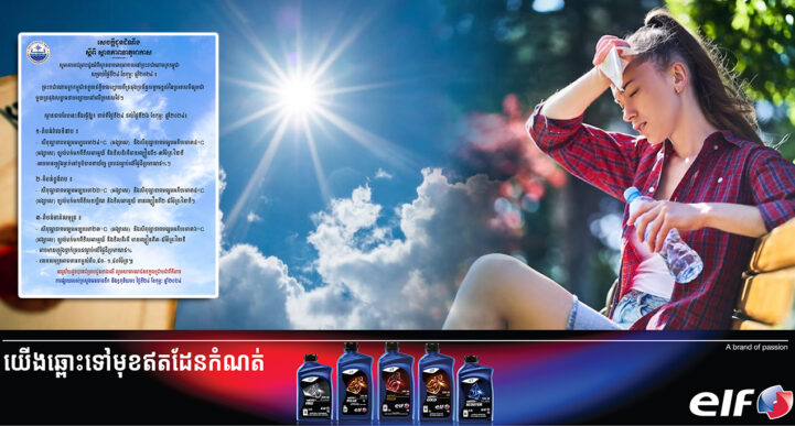 រាជធានីភ្នំពេញ៖ យោងតាមការចុះផ្សាយរបស់ ក្រសួងធនធានទឹក និងឧតុនិយម បានចេញសេចក្ដីជូនដំណឹង អំពីស្ថានភាពធាតុអាកាសនៅព្រះរាជាណាចក្រកម្ពុជាសម្រាប់ថ្ងៃទី២៤ ខែកុម្ភៈ ឆ្នាំ២០២៤។ ក្រសួងធនធានទឹក បានឱ្យដឹងថា ព្រះរាជាណាចក្រកម្ពុជាទទួលឥទ្ធិពលខ្សោយពីទ្រនុងប្រព័ន្ធសម្ពាធខ្ពស់នៃប្រទេសចិនរួមជាមួយទ្រនុងសម្ពាធទាបខ្យោយនៅលើប្រទេសថៃ។ ស្ថានភាពបែបនេះនឹងធ្វើឱ្យ ចាប់ពីថ្ងៃទី២៤ ដល់ថ្ងៃទី២៦ ខែកុម្ភៈ ឆ្នាំ២០២៤៖ ១. តំបន់វាលទំនាប៖ ⁃ សីតុណ្ហភាពមធ្យមអប្បបរមា២៤°C (អង្សាសេ) និងសីតុណ្ហភាពមធ្យមអតិបរមា៣៨°C (អង្សាសេ) ខ្យល់បក់មកពីទិសអាគ្នេយ៍ និងទិសនិរតីមានល្បឿនពី១-៣ម៉ែត្រ/វិនាទី -អាចមានភ្លៀងធ្លាក់នៅភូមិភាគពាយ័ព្យ គ្របដណ្ដប់លើផ្ទៃដីប្រមាណ៥%។ ២.តំបន់ខ្ពង់រាប៖ ⁃ សីតុណ្ហភាពមធ្យមអប្បបរមា២២°C (អង្សាសេ) និងសីតុណ្ហភាពមធ្យមអតិបរមា៣៨°C (អង្សាសេ) ខ្យល់បក់មកពីទិសទក្សិណ