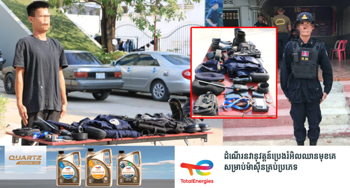 ខេត្តបន្ទាយមានជ័យ៖ នៅថ្ងៃទី១៩ ខែកុម្ភៈ ឆ្នាំ២០២៤ យោងតាមការចុះផ្សាយរបស់ កងរាជអាវុធហត្ថលើផ្ទៃប្រទេស បានឱ្យដឹងថា កម្លាំងមូលដ្ឋានកងរាជអាវុធហត្ថស្រុកស្វាយចេក ដឹកនាំដោយលោកអនុសេនីយ៍ឯក ភិន ចេតនា មេបញ្ជាការ(ស្ដីទី) មូលដ្ឋានកងរាជអាវុធហត្ថស្រុក បានចុះឃាត់ខ្លួនជនសង្ស័យម្នាក់ឈ្មោះ គុជ វិតី ភេទប្រុស អាយុ២៦ឆ្នាំ ជនជាតិខ្មែរបច្ចុប្បន្នរស់នៅភូមិចំការគ ឃុំស្វាយចេក ស្រុកស្វាយចេក ខេត្តបន្ទាយមានជ័យ ពាក់ព័ន្ធករណីប្រើប្រាស់នូវឯកសណ្ឋានជាអាទិ៍ ដែលមានភាពប្រហាក់ប្រហែលគ្នានឹងនគរបាល ឬយោធា និងប្រើប្រាស់ដោយខុសច្បាប់នូវសារធាតុញៀន ដែលប្រព្រឹត្តកាលពីវេលាម៉ោង១៧ និង៣០នាទី ថ្ងៃទី១៦ ខែកុម្ភៈ ឆ្នាំ២០២៤ នៅចំណុចក្នុងភូមិតេជោភ្នំឆ័ត្រ ឃុំស្វាយចេក ស្រុកស្វាយចេក