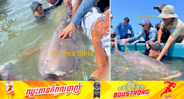 ខេត្តត្បូងឃ្មុំ៖ យោងតាមការចុះផ្សាយរបស់ ខណ្ឌរដ្ឋបាលជលផលត្បូងឃ្មុំ បានឱ្យដឹងថា នៅព្រឹកថ្ងៃទី១៦ ខែធ្នូ ឆ្នាំ២០២៣នេះ លោក សយ ស៑ាងហុង នាយផ្នែករដ្ឋបាលជលផលត្បូងឃ្មុំ និងមន្ត្រីខណ្ឌ បានចូលរួមជាមួយក្រុមការងារវិទ្យាស្ថានស្រាវជ្រាវជលផលទឹកសាប (IFreDI) នៃរដ្ឋបាលជលផល នាយរងអធិការដ្ឋានរដ្ឋបាលជលផលមេគង្គ យោធាភូមិភាគ២ ប្រជាពលរដ្ឋ និងក្រុមការងារអច្ឆរិយៈភាពនៃទន្លេមេគង្គ (Wonder of the Mekong) បានចូលរួមលែងត្រីរាជញីមួយក្បាលមានទំងន់ ១៦៣គីឡូក្រាម ប្រវែងដងខ្លួន ២.២៥ម៉ែត្រ ដែលចាប់បានដោយអ្នកនេសាទ ឈ្មោះ ស៊េន យ៉ាក់កូប រស់នៅភូមិព្រែកតូច ឃុំទន្លេបិទ ស្រុកត្បូងឃ្មុំ
