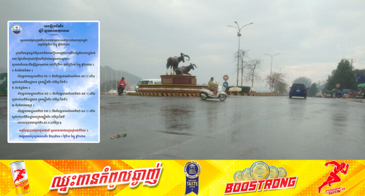 រាជធានីភ្នំពេញ៖ យោងតាមការចុះផ្សាយរបស់ ក្រសួងធនធានទឹក និងឧតុនិយម បានចេញសេចក្ដីជូនអំពីស្ថានភាពធាតុអាកាសនៅព្រះរាជាណាចក្រកម្ពុជាសម្រាប់ថ្ងៃទី១១ ខែធ្នូ ឆ្នាំ២០២៣។ ក្រសួងធនធានទឹក បានឱ្យដឹងថា ទ្រនុងនៃសម្ពាធខ្ពស់ពីប្រទេសចិនមានឥទ្ធិពលខ្សោយមកលើតំបន់ខ្ពង់រាបភាគឦសាន ខណៈផ្នែកដទៃទៀតរងឥទ្ធិពលពីជ្រលងសម្ពាធទាបខ្សោយ។ ស្ថានភាពបែបនេះនឹងធ្វើឱ្យធាតុអាកាស ចាប់ពីថ្ងៃទី១១ ដល់ថ្ងៃទី១៣ ខែធ្នូ ឆ្នាំ២០២៣៖ ១-តំបន់វាលទំនាប៖ ⁃ សីតុណ្ហភាពអប្បបរមាពី២៤-២៦°C និងសីតុណ្ហភាពអតិបរមាពី៣៣-៣៦°C ហើយខ្យល់បក់មកពីទិសឦសាន ក្នុងល្បឿនពី១-២ម៉ែត្រ/វិនាទី។ ២-តំបន់ខ្ពង់រាប៖ ⁃ សីតុណ្ហភាពអប្បបរមាពី២៣-២៥°C និងសីតុណ្ហភាពអតិបរមាពី៣២-៣៥°C ហើយខ្យល់បក់មកពីទិសឦសាន ក្នុងល្បឿនពី១-២ម៉ែត្រ/វិនាទី។ ៣-តំបន់មាត់សមុទ្រ៖ ⁃ សីតុណ្ហភាពអប្បបរមាពី២៥-២៧°C និងសីតុណ្ហភាពអតិបរមាពី៣២-៣៤°C ហើយខ្យល់បក់មកពីទិសឦសានក្នុងល្បឿនពី១-២ម៉ែត្រ/វិនាទី ⁃