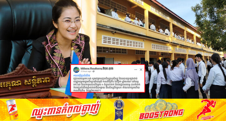 ខេត្តកោះកុង៖ នៅថ្ងៃទី០៨ ខែធ្នូ ឆ្នាំ២០២៣ម្សិលមិញនេះ យោងតាមគណនីហ្វេប៊ុកផ្ទាល់របស់ លោកជំទាវ មិថុនា ភូថង អភិបាល នៃគណៈអភិបាលខេត្តកោះកុង បានប្រកាសផ្ដល់ថវិកាលើកទឹកចិត្តចំនួន ៤លានរៀល ជូនដល់សិស្សជាប់និទ្ទេស A ចំនួន ៣នាក់ និងម៉ូតូម្នាក់ ០១គ្រឿង ដែលជាអំណោយរបស់សម្តេចពិជ័យសេនា ទៀ បាញ់។ តាមរយៈការបង្ហោះរបស់ លោកជំទាវ មិថុនា ភូថង បានមានខ្លឹមបញ្ជាក់យ៉ាងដូច្នេះថា៖ «រដ្ឋបាលខេត្តកោះកុង សូមជម្រាបជូនសិស្សានុសិស្ស ដែលបានប្រឡងជាប់សញ្ញាបត្រមធ្យមសិក្សាទុតិយភូមិ កាលពីថ្ងៃទី៦ ខែវិច្ឆិកា ឆ្នាំ២០២៣ នៅខេត្តកោះកុង ដែលទទួលបាននិទ្ទេស