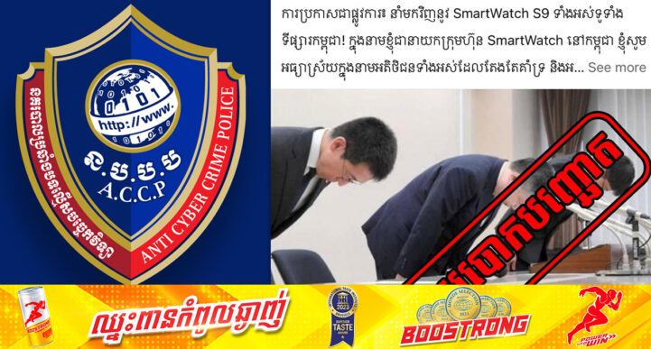 រាជធានីភ្នំពេញ៖ យោងតាមការចុះផ្សាយរបស់ នាយកដ្ឋានប្រឆាំងបទល្មើសបច្ចេកវិទ្យា បានឱ្យដឹងថា ថ្មីៗនេះ នាយកដ្ឋានប្រឆាំងបទល្មើសបច្ចេកវិទ្យា បានស្រាវជ្រាវឃើញថា មានគណនីតាមបណ្តាញទំនាក់ទំនងសង្គមមួយចំនួន បានបង្ហោះផ្សព្វផ្សាយ និងចែកចាយបន្ត នូវតំណរភ្ជាប់បោកបញ្ឆោត ឬការផ្សាយពាណិជ្ជកម្មបោកបញ្ឆោត អំពីការលក់នាឡិការ Smart Watch S9 ដែលមានតម្លៃថោកជាងទីផ្សារច្រើន។ នាយកដ្ឋានប្រឆាំងបទល្មើសបច្ចេកវិទ្យា បានបន្តថា ការផ្សាយពាណិជ្ជកម្មនេះ ក្នុងគោលបំណងបោកបញ្ឆោត និងទាក់ទាញដល់អ្នកប្រើប្រាស់បណ្តាញទំនាក់ទំនងសង្គមខាងលើ ឱ្យមានការចាប់អារម្មណ៍ ដើម្បីធ្វើការបំពេញនូវព័ត៌មានផ្ទាល់ខ្លួន ដែលជាហេតុបណ្ដាលឱ្យជនឆ្លៀតឱកាស អាចយកព័ត៌មានផ្ទាល់ខ្លួននេះ ទៅប្រើប្រាស់ក្នុងគោលបំណងទុច្ចរិតណាមួយ ឬបន្ទាប់ធ្វើការបញ្ជាទិញរួចរាល់ ហើយពុំទទួលបានឥវ៉ាន់។ នាយកដ្ឋានប្រឆាំងបទល្មើសបច្ចេកវិទ្យា សូមក្រើនរំលឹកដល់សាធារណជន ដែលប្រើប្រាស់បណ្តាញសង្គមនានា សូមប្រុងប្រយ័ត្ន និងពិនិត្យអោយបានច្បាស់លាស់ទៅលើការផ្សព្វផ្សាយពាណិជ្ជកម្មអ្វីមួយ