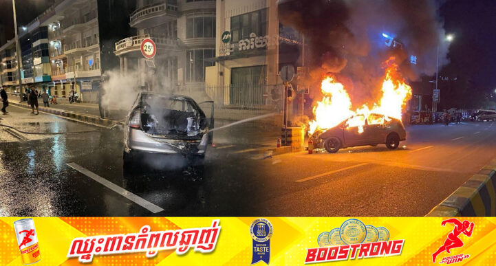 រាជធានីភ្នំពេញ៖ នៅថ្ងៃទី០៥ ខែធ្នូ ឆ្នាំ២០២៣ យោងតាមការចុះផ្សាយរបស់ ការិយាល័យបង្ការពន្លត់អគ្គិភ័យ និងសង្គ្រោះ បានឱ្យដឹងថា អគ្គិភ័យឆាបឆេះរថយន្ត មួយគ្រឿង នៅវេលាម៉ោង ១១និង៣០នាទីយប់ ថ្ងៃទី០៤ ខែធ្នូ ឆ្នាំ២០២៣ ដែលស្ថិតនៅចំណុចតាមបណ្តោយផ្លូវសហព័ន្ធរុស្ស៉ី សង្កាត់ទឹកល្អក់ទី១ ខណ្ឌទួលគោក រាជធានីភំ្នពេញ។ ករណីអគ្គិភ័យខាងលើនេះ គឺបណ្តាលមកពីបុកដៃស្ពានអាកាស៥មករា បង្កជាអគ្គិភ័យ ហើយធ្វើឲ្យខូចខាតឆេះរថយន្ត មួយគ្រឿង ម៉ាក TOYOTA PRIUS ពណ៌ទឹកប្រាក់ (រថយន្តដឹកភ្ញៀវទេសចរណ៍) អស់ទាំងស្រុង។ ចំពោះករណីអគ្គិភ័យខាងលើ ត្រូវបានកម្លាំងសមត្ថកិច្ចជំនាញយើងធ្វើការគ្រប់គ្រងបាននៅវេលាម៉ោង១១និង៥០នាទីយប់នាថ្ងៃខែឆ្នាំដដែរ។ ដោយនៅក្នុងនោះ គ្រោះអគ្គិភ័យខាងលើនេះបានបណ្តាលឲ្យមនុស្សប្រុសចំនួន០២នាក់បានរងរបួសស្រាល