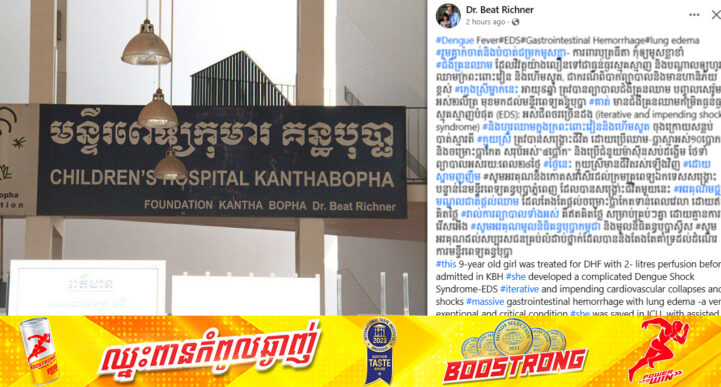 រាជធានីភ្នំពេញ៖ នៅថ្ងៃទី០៥ ខែធ្នូ ឆ្នាំ២០២៣ យោងតាមគណនីហ្វេសប៊ុកផ្ទាល់របស់ Dr. Beat Richner បានឱ្យដឹងថា ក្មេងស្រីម្នាក់ អាយុ ៩ឆ្នាំ មានជំងឺគ្រុនឈាមកម្រិតធ្ងន់ធ្ងរ បណ្ដាលឱ្យអស់ជីពចរជាច្រើនដង រហូតដល់សន្លប់បាត់ស្មារតី ត្រូវបានក្រុមគ្រូពេទ្យមន្ទីរពេទ្យគន្ធបុប្ផាភ្នំពេញ ជួយសង្គ្រោះឱ្យមានជីវិតរស់ឡើងវិញ។ តាមរយៈការបង្ហោះពីគណនីហ្វេសប៊ុករបស់ Dr. Beat Richner បានបញ្ជាក់ថា ក្មេងស្រីម្នាក់នេះ អាយុ៩ឆ្នាំ ត្រូវបានព្យាបាលជំងឺគ្រុនឈាម បញ្ចូលសេរ៉ូមអស់២លីត្រ មុខមកដល់មន្ទីរពេទ្យគន្ធបុប្ផា គាត់ មានជំងឺគ្រុនឈាមកម្រិតធ្ងន់ធ្ងរស្មុគស្មាញបំផុត (EDS): អស់ជីពចរច្រើនដង (iterative and impending