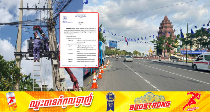 រាជធានីភ្នំពេញ៖ នៅថ្ងៃទី០៨ ខែវិច្ឆិកា ឆ្នាំ២០២៣ យោងតាមការចុះផ្សាយរបស់ អគ្គិសនីកម្ពុជា បានចេញសេចក្តីជូនដំណឹងស្តីពីការអនុវត្តការងារជួសជុល ផ្លាស់ប្តូរ ដំឡើងបរិក្ខារនានា និងរុះរើគន្លងខ្សែបណ្តាញអគ្គិសនីរបស់អគ្គិសនីកម្ពុជា ដើម្បីបង្កលក្ខណៈងាយស្រួលដល់ការដ្ឋានពង្រីកផ្លូវ នៅថ្ងៃទី១០ ខែវិច្ឆិកា ឆ្នាំ២០២៣ ដល់ថ្ងៃទី១២ ខែវិច្ឆិកា ឆ្នាំ២០២៣ នៅតំបន់មួយចំនួនទៅតាមពេលវេលា និងទីកន្លែងដូចសេចក្តីជូនដំណឹងលម្អិតខាងក្រោម។ ទោះជាមានការខិតខំថែរក្សាមិនឱ្យមានការប៉ះពាល់ដល់ការផ្គត់ផ្គង់អគ្គិសនីធំដុំ ប៉ុន្តែការផ្គត់ផ្គង់ចរន្តអគ្គិសនីនៅតំបន់ខាងលើអាចនឹងមានការរអាក់រអួលខ្លះៗជៀសមិនផុតដែលយើងខ្ញុំស្នើសុំអភ័យទោសទុកជាមុន ៕ ប្រភព៖ អគ្គិសនីកម្ពុជា – EDC
