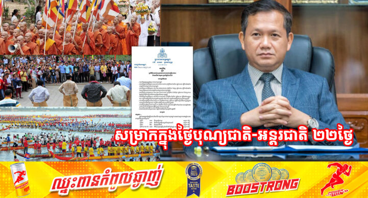 រាជធានីភ្នំពេញ៖ នៅថ្ងៃទី៣១ ខែសីហា ឆ្នាំ២០២៤ សម្តេចមហាបវរធិបតី ហ៊ុន ម៉ាណែត នាយករដ្ឋមន្ត្រីនៃព្រះរាជាណាចក្រកម្ពុជា បានចេញអនុក្រឹត្យ ស្តីពី ប្រតិទិនឈប់សម្រាកការងាររបស់មន្ត្រីរាជការ និយោជិត កម្មករ ប្រចាំឆ្នាំ២០២៥ ដោយឈប់បាន ២២ថ្ងៃ។ ការឈប់សម្រាកការងាររបស់មន្ត្រីរាជការ និយោជិត កម្មករ ប្រចាំឆ្នាំ២០២៥ សរុបមានរយៈពេល២២ថ្ងៃ តាមប្រតិទិន ដូចខាងក្រោម៖ – ថ្ងៃទី ០១ មករា ទិវាចូលឆ្នាំសកល សម្រាក០១ថ្ងៃ – ថ្ងៃទី ០៧ មករា ទិវាជ័យជម្នះលើរបបប្រល័យពូជសាសន៍