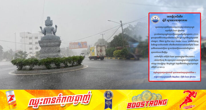 រាជធានីភ្នំពេញ៖ នៅថ្ងៃទី០៦ ខែតុលា ឆ្នាំ២០២៣ យោងតាមការចុះផ្សាយរបស់ ក្រសួងធនធានទឹក និងឧតុនិយម បានចេញសេចក្ដីជូនដំណឹង ស្ដីពី ស្ថានភាពធាតុអាកាស សម្រាប់ថ្ងៃទី០៦ ខែតុលា ឆ្នាំ២០២៣។ ព្រះរាជាណាចក្រកម្ពុជា ទទួលឥទ្ធិពលខ្សោយពីប្រព័ន្ធសម្ពាធទាប (ITCZ) អូសបន្លាយលើប៉ែកខាងក្រោមនៃអាងមេគង្គ ថៃ ឡាវ ជាមួយនឹងខ្យល់មូសុងនិរតីបក់មធ្យម។ ចំណែក ព្យុះទី១៤ ឈ្មោះ កយនុយ” Koinu” បាននិងកំពុងបន្តដំណើរឆ្ពោះមកទិសខាងលិច ហើយនឹងទៅដល់កោះហុងកុងនៅថ្ងៃទី៨ ខែតុលា មុននឹងរលាយអស់ឥទ្ធិពល ព្យុះនេះពុំមានឥទ្ធិពលមកដល់លើកម្ពុជាទេ។ ស្ថានភាពបែបនេះនឹងធ្វើឱ្យ៖ – ចាប់ពីនៅថ្ងៃទី៦ ដល់ថ្ងៃទី៨