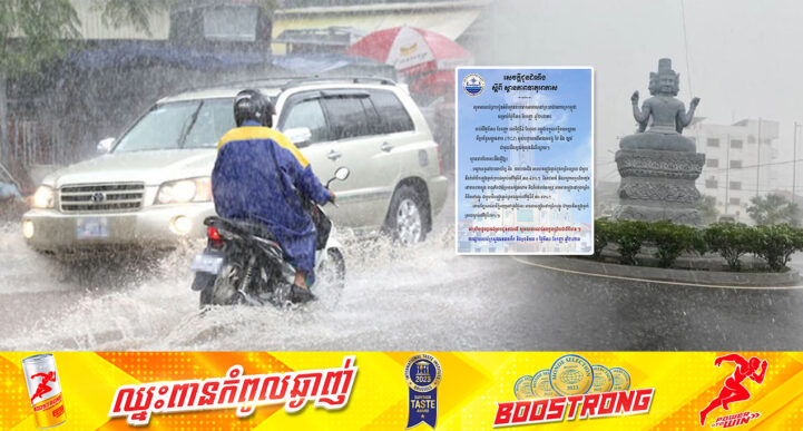 រាជធានីភ្នំពេញ៖ នៅថ្ងៃទី៣០ ខែកញ្ញា ឆ្នាំ២០២៣ យោងតាមការចុះផ្សាយរបស់ ក្រសួងធនធានទឹក និងឧតុនិយម បានចេញសេចក្ដីជូនដំណឹង ស្ដីពីស្ថានភាពធាតុអាកាស នៅព្រះរាជាណាចក្រកម្ពុជា ចាប់ពីថ្ងៃទី៣០ ខែកញ្ញា ដល់ថ្ងៃទី៤ ខែតុលា ឆ្នាំ២០២៣។ កម្ពុជាទទួលឥទ្ធិពលខ្សោយ ពីប្រព័ន្ធសម្ពាធទាប (ITCZ) អូសបន្លាយលើអាងមេគង្គ ថៃ និង ឡាវ ជាមួយនឹងខ្យល់មូសុងនិរតីខ្សោយ។ ស្ថានភាពបែបនេះនឹងធ្វើឱ្យ៖ – បណ្តាខេត្តនៅភាគពាយ័ព្យ និង ភាគខាងជើង អាចមានភ្លៀងធ្លាក់ក្នុងកម្រិតខ្សោយ ជាមួយ នឹងទំហំទឹកភ្លៀងធ្លាក់គ្របដណ្តប់លើផ្ទៃដីពី ៣០-៤០%។ រីឯរាជធានី និងបណ្តាខេត្តដទៃទៀត