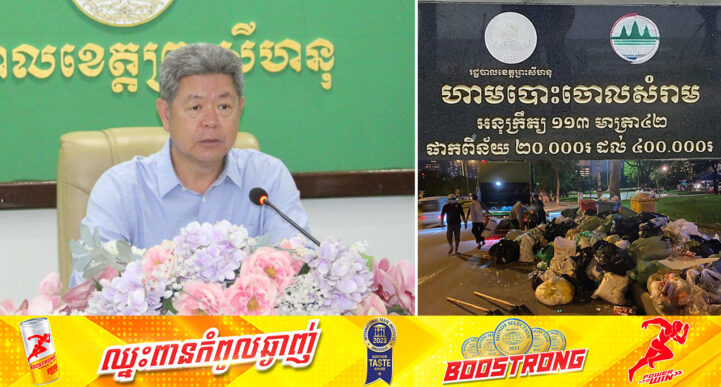 ក្រុងព្រះសីហនុ៖ នៅថ្ងៃទី២១ ខែកញ្ញា ឆ្នាំ២០២៣ យោងតាមការចុះផ្សាយរបស់ រដ្ឋបាលខេត្តព្រះសីហនុ បានឱ្យដឹងថា ប្រជាពលរដ្ឋក្នុងក្រុងព្រះសីហនុ អាចបញ្ចេញសំរាមដោយខ្លួនឯងនៅម៉ោង ៨ដល់ ១០យប់ ឱ្យមានតម្លាភាព ត្រូវឯកភាពគ្នាតាមកម្មវិធីនៃការបញ្ចេញសំរាម និងការប្រមូលសំរាម ដើម្បីសោភ័ណភាពក្រុងព្រះសីហនុស្អាតបៃតង ចំពោះអ្នកដែលមិនបានចូលរួម ហើយបញ្ចេញសំរាមខុសម៉ោង នឹងត្រូវឲ្យមន្ទីរបរិស្ថានខេត្ត ផាកពិន័យតាមអនុក្រឹត្យលេខ១១ មាត្រា៤២ ផាកពិន័យពី២០.០០០រៀល ដល់ ៤០០.០០០រៀល។ សូមជម្រាបជូនថា កាលពីព្រឹកថ្ងៃទី១៩ ខែកញ្ញា ឆ្នាំ២០២៣ ឯកឧត្តម គួច ចំរើន អភិបាល នៃគណៈអភិបាលខេត្តព្រះសីហនុ បានធ្វើការណែនាំជំរុញការបញ្ចេញ និងប្រមូលសំរាមឱ្យបានទាន់ពេលវេលាឱ្យបានស្អាតនៅក្នុងទីក្រុងព្រះសីហនុ