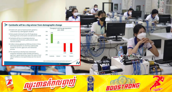 រាជធានីភ្នំពេញ៖ យោងតាមការចុះផ្សាយរបស់ ក្រសួងព័ត៌៌មាន បានឱ្យដឹងថា តាមការសិក្សារបស់ស្ថាប័ន Mekong Strategic Partners បង្ហាញឲ្យដឹងកាលពីពេលថ្មីៗនេះថា កម្ពុជានឹងអាចក្លាយជាប្រទេសទទួលបានប្រយោជន៍ធំធេងជាងគេពីការផ្លាស់ប្តូរប្រជាសាស្ត្រនៅក្នុងតំបន់ ដោយប្រជាជនវ័យក្មេងពោរពេញដោយថាមពល និងលទ្ធភាពការងារ នឹងមានកំណើនប្រមាណ ២៤ ភាគរយ ក្នុងការចូលរួមជំរុញកំណើនសេដ្ឋកិច្ចជាតិ ខណៈវៀតណាមនឹងមានកំណើនត្រឹមតែ ១ ភាគរយ ប៉ុន្តែថៃត្រូវបានព្យាករណ៍ថានឹងធ្លាក់ចុះ ២៣ ភាគរយ ហើយចិននឹងធ្លាក់ចុះ ២២ភាគរយ។ ប្រភពដដែលអធិប្បាយថា ២០ ឆ្នាំទៅមុខទៀតនៃកំណើនសេដ្ឋកិច្ចយ៉ាងឆាប់រហ័សក្នុងតំបន់ ត្រូវបានធានា និងពឹងផ្អែកលើកត្តាប្រជាសាស្ត្រ។ ទន្ទឹមនេះ មនុស្សកាន់តែច្រើនក្នុងតំបន់នឹងឈានទៅចូលក្នុងក្រុមអាយុ ៣០-៤៩ ឆ្នាំ ដែលជាក្រុមមួយមានតម្រូវការ