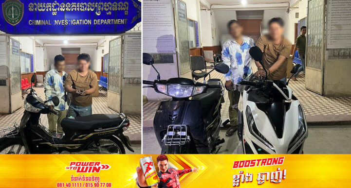 រាជធានីភ្នំពេញ៖ យោងតាមការចុះផ្សាយរបស់ នាយកដ្ឋាននគរបាលព្រហ្មទណ្ឌ នៃអគ្គស្នងការដ្ឋាននគរបាលជាតិ ក្រសួងមហាផ្ទៃ បានឱ្យដឹងថា នៅថ្ងៃទី០៤ ខែកញ្ញា ឆ្នាំ២០២៣ វេលាម៉ោង១៩៖០៥នាទី លោកឧត្តមសេនីយ៍ត្រី ប៊ុត វណ្ណារដ្ឋ អនុប្រធាននាយកដ្ឋាន បានដឹកនាំកម្លាំងជំនាញការិយាល័យព្រហ្មទណ្ឌកម្រិតធ្ងន់ ដែលមានលោកវរសេនីយ៍ឯក ញ៉ែម វ៉ន ជានាយការិយាល័យ ដោយមានការចូលរួមសហការពីលោកវរសេនីយ៍ទោ ប៊ុត ស៉ីម៉េង ចុះល្បាតតាមផ្លូវលេខ២៦១ កែងផ្លូវលេខ២០៤ ក្នុងសង្កាត់ទឹកល្អក់ទី៣ ខណ្ឌទួលគោក រាជធានីភ្នំពេញ ក៏ប្រទះឃើញជនសង្ស័យ ជិះម៉ូតូចំនួន០១គ្រឿង មានគ្នាចំនួន០២នាក់ បានធ្វើសកម្មភាពកាច់កម៉ូតូ ដែលចតទុកចោលបានសម្រេច។ ភ្លាមនោះកម្លាំងជំនាញការិយាល័យធ្វើការប្រដេញដល់ចំណុចផ្លូវលេខ២៦៥កែងផ្លូវលេខ១៥០ ក្នុងសង្កាត់ទឹកល្អក់ទី២