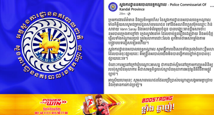 ខេត្តកណ្ដាល៖ នៅថ្ងៃទី០៥ ខែកញ្ញា ឆ្នាំ២០២៣ យោងតាមការចុះផ្សាយរបស់ ស្នងការដ្ឋាននគរបាលខេត្តកណ្តាល បានឱ្យដឹងថា ក្រុមការងារព័ត៌មាន និងប្រតិកម្មរហ័ស នៃស្នងការដ្ឋាននគរបាលខេត្តកណ្តាល មានកិត្តិយសសូមជម្រាបជូនសាធារណជន ទៅនឹងគណនីហ្វេសប៊ុក និងគេហទំព័រមួយចំនួន បានបង្ហោះមានខ្លឹមសារថា៖ «នគរបាលក្រុងតាខ្មៅថា ក្មេងស្ទាវ២នាក់ ដែលចាប់ខ្លួនរឿងដេញវាយ និងគប់ដុំថ្មផ្អើលទាំងកណ្តាលយប់ ត្រូវតុលាការដោះលែង ពួកគាត់ថាអស់កម្លាំងតាមបង្រ្កាបបទល្មើសទៀតហើយ។» ស្នងការដ្ឋាននគរបាលខេត្តកណ្តាល សូមធ្វើការបដិសេធទាំងស្រុងចំពោះខ្លឹមសារដែលបានចុះផ្សាយនេះ គឺមន្រ្តីនគរបាលយើងមិនបានធ្វើការបញ្ជាក់ដូចបានចុះផ្សាយនេះទេ។ ចំពោះការដោះលែងរបស់ស្ថាប័នតុលាការ គឺសមត្ថកិច្ចនីតិវិធីរបស់តុលាការធ្វើទៅតាមផ្លូវច្បាប់។ អាស្រ័យហេតុនេះ សូមសាធារណជនដែលប្រើប្រាស់បណ្តាញសង្គមមេត្តាជ្រាប និងកុំមានការភាន់ច្រឡំ៕ ប្រភព៖ ស្នងការដ្ឋាននគរបាលខេត្តកណ្តាល – Police Commissariat Of