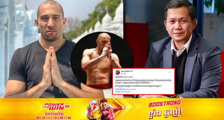 រាជធានីភ្នំពេញ៖ នៅថ្ងៃទី១៥ ខែសីហា ឆ្នាំ២០២៣ យោងតាមការចុះផ្សាយរបស់ ក្រសួងព័ត៌មាន បានឱ្យដឹងថា ឯកឧត្តម កិត្តិទេសាភិបាលបណ្ឌិត ហ៊ុន ម៉ាណែត នាយករដ្ឋមន្ត្រីនៃព្រះរាជាណាចក្រកម្ពុជា បានថ្លែងនូវការអរគុណ ចំពោះអ្នកប្រដាល់ល្បីល្បាញប្រចាំប្រទេសមីយ៉ាន់ម៉ា ចំពោះទឹកចិត្តស្រឡាញ់ប្រទេសកម្ពុជា និងក្បាច់គុនបុរាណខ្មែរ។ តាមរយៈទំព័រហ្វេសប៊ុកផ្លូវការរបស់ ឯកឧត្តម កិត្តិទេសាភិបាលបណ្ឌិត ហ៊ុន ម៉ាណែត បានសរសេរថា «សួស្ដីលោក Dave Leduc ! សូមអរគុណលោកចំពោះទឹកចិត្តស្រឡាញ់ប្រទេសកម្ពុជា និងក្បាច់គុនបុរាណខ្មែរ (គុនខ្មែរ)។ សូមជូនពរលោកទទួលបានជោគជ័យ។ រង់ចាំជួបគ្នានាចុងឆ្នាំនេះ ពេលដែលលោកមកកាន់ប្រទេសកម្ពុជា»។ ការបញ្ចេញសារថ្លែងនូវការអរគុណរបស់ ឯកឧត្តម