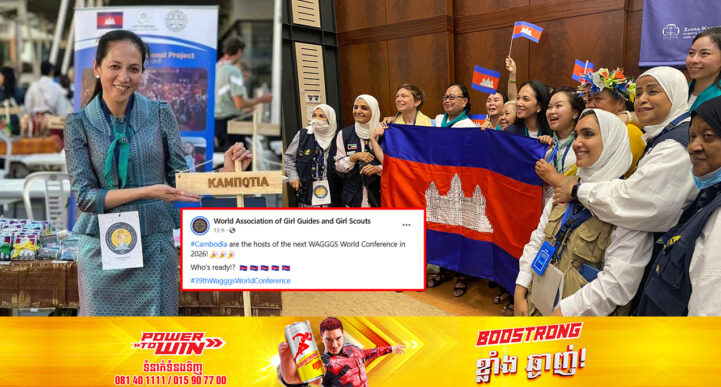 រាជធានីភ្នំពេញ៖ នៅថ្ងៃទី៣១ ខែកក្កដា ឆ្នាំ២០២៣ម្សិលមិញនេះ យោងតាមប្រភពពីគណនីហ្វេសប៊ុកផ្លូវការ សមាគមកាយប្ញទ្ធិនារីពិភពលោក បានឱ្យដឹងថា កម្ពុជាទទួលជ័យជម្នះជាប់ឆ្នោត ជាប្រទេសម្ចាស់ផ្ទះសន្និសីទកាយឫទ្ធិនារីពិភពលោកលើកទី៣៩ នៅកម្ពុជា ឆ្នាំ២០២៦។ ទីបំផុតកម្ពុជាទទួលបានលទ្ធផលប្រវត្តិសាស្ត្រ និងមហាកិត្តិយសដ៏ ខ្ពង់ខ្ពស់បំផុត កម្ពុជាត្រូវបានបោះឆ្នោតជ្រើសរើសឱ្យធ្វើជាម្ចាស់ផ្ទះរៀបចំសន្និបាតពិភពលោកលើកទី៣៩ ឆ្នាំ២០២៦ របស់សមាគមកាយប្ញទ្ធិនារីពិភពលោក (39th WAGGGS Conference)។ សូមបញ្ជាក់ថា លោកជំទាវបណ្ឌិត ពេជ ចន្ទមុន្នី ហ៊ុនម៉ាណែត បានដឹកនាំគណៈប្រតិភូទៅ ចូលរួមអង្គសន្និបាតលើកទី៣៨ របស់សមាគមកាយប្ញទ្ធិនារីពិភពលោក (38th WAGGGS Conference) កាលពីថ្ងៃទី៣១ ខែកក្កដា ឆ្នាំ២០២៣