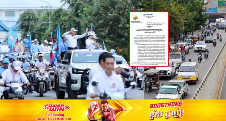 រាជធានីភ្នំពេញ៖ នៅថ្ងៃទី១៩ ខែកក្កដា ឆ្នាំ២០២៣ យោងតាមការចុះផ្សាយរបស់ រដ្ឋបាលរាជធានីភ្នំពេញ បានសេចក្តីជូនដំណឹង ស្តីពីការបញ្ចៀសចរាចរយានយន្តគ្រប់ប្រភេទជាបណ្តោះអាសន្នក្នុងអំឡុងពេល បិទយុទ្ធនាការឃោសនាបោះឆ្នោតជ្រើសតាំងតំណាងរាស្ត្រ នីតិកាលទី៧ ឆ្នាំ២០២៣ នៅថ្ងៃទី២១ ខែកក្កដា ឆ្នាំ២០២៣។ រដ្ឋបាលរាជធានីភ្នំពេញ សូមជម្រាបជូនដំណឹងដល់បងប្អូនប្រជាពលរដ្ឋទាំងអស់ក្នុងរាជធានីភ្នំពេញ ឱ្យបានជ្រាបថា នៅថ្ងៃទី២១ ខែកក្កដា ឆ្នាំ២០២៣ ជាថ្ងៃបិទយុទ្ធនាការឃោសនាបោះឆ្នោតជ្រើសតាំង តំណាងរាស្ត្រ នីតិកាលទី៧ របស់គណបក្សនយោបាយនានាដែលបានស្នើសុំទៅគណៈកម្មការរៀបចំការ បោះឆ្នោតរាជធានីភ្នំពេញ ដើម្បីធ្វើការជួបជុំសមាជិក សមាជិកា និងដង្ហែក្បួនឃោសនារកសម្លេងឆ្នោតក្នុង រាជធានីភ្នំពេញ ក្នុងនោះមានគណបក្សចំនួន០៣ ក្នុងចំណោមគណបក្សទាំង១៨ ដែលមានសកម្មភាព ដូចខាងក្រោម៖ ប្រភព៖