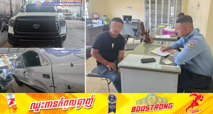 រាជធានីភ្នំពេញ៖ យោងតាមការចុះផ្សយារបស់ ក្រុមការងារព័ត៌មាន និងប្រតិកម្មរហ័ស នៃស្នងការដ្ឋាននគរបាលរាជធានីភ្នំពេញ បានឱ្យដឹងថា នៅថ្ងៃទី២១ ខែសីហា ឆ្នាំ២០២៤ សមត្ថកិច្ចជំនាញបានធ្វើការស្រាវជ្រាវឃាត់ខ្លួនបុរសម្នាក់ បើកបររថយន្តម៉ាក Tundra ពណ៌ស ពាក់ស្លាកលេខ នប ២-៧៧២៧ បង្កគ្រោះថ្នាក់ចរាចរណ៍ បណ្តាលឱ្យអ្នកបើកបរម៉ូតូ និងរួមដំណើររបួសធ្ងន់ កាលពីថ្ងៃទី២០ ខែសីហា ឆ្នាំ២០២៤ វេលាម៉ោង ០២៖២០នាទី នៅចំណុចផ្លូវព្រះស៊ីសុវត្ថិ កែងផ្លូវលេខ៩០ សង្កាត់ស្រះចក ខណ្ឌដូនពេញ។ ហេតុការណ៍កាលពីថ្ងៃទី២០ ខែសីហា ឆ្នាំ២០២៤ វេលាម៉ោង០២:២០នាទី នៅចំណុចផ្លូវព្រះស៊ីសុវត្ថិ កែងផ្លូវលេខ៩០