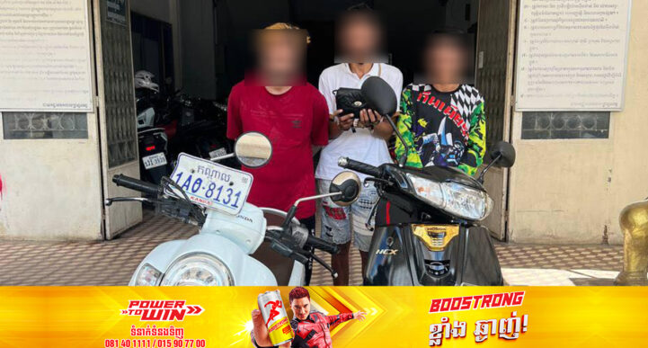 រាជធានីភ្នំពេញ៖ យោងតាមការចុះផ្សាយរបស់ នាយកដ្ឋាននគរបាលព្រហ្មទណ្ឌ បានឱ្យដឹងថា នៅថ្ងៃទី០៩ ខែកក្កដា ឆ្នាំ២០២៣ វេលាម៉ោង១៣៖៤០នាទី លោកឧត្តមសេនីយ៍ត្រី ប៊ុត វណ្ណារដ្ឋ អនុប្រធាននាយកដ្ឋាននគរបាលព្រហ្មទណ្ឌ ដឹកនាំកម្លាំងជំនាញចុះល្បាតតាមបណ្តោយផ្លូវលេខ៣១០ ក្នុងសង្កាត់បឹងកេងកងទី១ ខណ្ឌបឹងកេងកង រាជធានីភ្នំពេញ ក៏ប្រទះឃើញជនសង្ស័យ ជិះម៉ូតូចំនួន០២គ្រឿង មានគ្នាចំនួន០៣នាក់ បានធ្វើសកម្មភាពឆក់កាបូបស្ពាយពីនារីរងគ្រោះដែលកំពុងជិះម៉ូតូបានសម្រេច។ ភ្លាមនោះកម្លាំងជំនាញធ្វើការប្រដេញ និងឃាត់ខ្លួនជនសង្ស័យបានទាំង០៣នាក់ នៅចំណុចមុខក្លោងទ្វារវត្តសន្សំកុសល ផ្លូវលេខ២៧១ សង្កាត់បឹងទំពុនទី១ ខណ្ឌមានជ័យ រាជធានីភ្នំពេញ រួមមាន៖ *ទី១៖ ឈ្មោះ ខន ហ្វីលីប ភេទប្រុស អាយុ១៨ឆ្នាំ