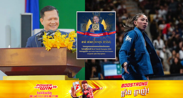 រាជធានីភ្នំពេញ៖ នៅថ្ងៃទី០៥ ខែមិថុនា ឆ្នាំ២០២៣ យោងតាមគណនីហ្វេសប៊ុកផេកផ្ទាល់របស់ ឯកឧត្តមបណ្ឌិត ហ៊ុន ម៉ាណែត បានចូលរួមអបអរសាទរ ដល់កីឡាការិនី ខាន់ ជេសា ទទួលបានមេដាយមាសជើងឯកពិភពលោក នៃការព្រឹត្តិការណ៍ IBJJF World Champion 2023 ក្រោយយកឈ្នះកីឡាការិនីប្រេស៊ីល Thamires Aquino វគ្គផ្តាច់ព្រ័ត្រ ដែលធ្វើឡើងនៅសហរដ្ឋអាមេរិក។ តាមរយៈសំណេរ ក្នុងគណនីហ្វេសប៊ុកផេករបស់ ឯកឧត្តមបណ្ឌិត ហ៊ុន ម៉ាណែត បានមានខ្លឹមសារយ៉ាងដូច្នេះថា៖ «អបអរសាទរ កីឡាការិនី ខាន់ ជេសា (KHAN
