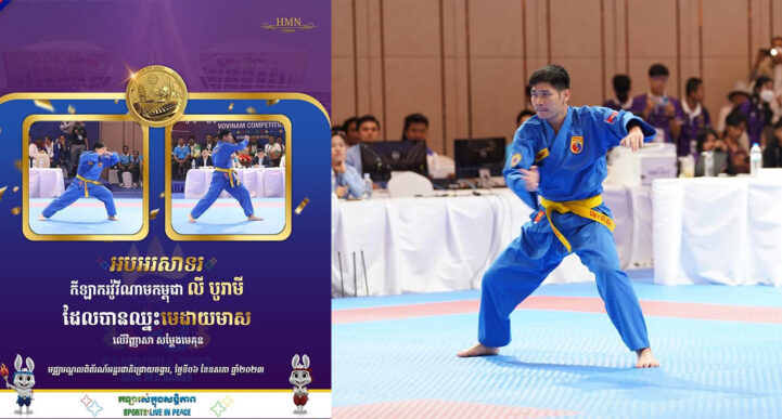 រាជធានីភ្នំពេញ៖ នៅថ្ងៃទី០៦ ខែឧសភា ឆ្នាំ២០២៣ យោងតាមការចុះផ្សាយរបស់ ក្រសួងអប់រំ យុវជន និងកីឡា បានឱ្យដឹងថា កីឡាករវ៉ូវីណាមកម្ពុជា លី បូរាមី បានឈ្នះមេដាយមាស លើវិញ្ញាសាសម្តែងមេគុន នៅមជ្ឈមណ្ឌលពិព័រណ៍អន្តរជាតិជ្រោយចង្វារ។ សូមបញ្ជាក់ជូនថា កីឡាករវ៉ូវីណាមកម្ពុជា លី បូរាមី ធ្វើបាន ២៧២ពិន្ទុ ដែលមានកីឡាករវៀតណាម ឈរលេខ២ រកបាន ២៦៧ពិន្ទុ និងថៃ រកបាន ២៦០ពិន្ទុ ៕