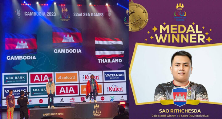 រាជធានីភ្នំពេញ៖ នៅថ្ងៃទី០៦ ខែឧសភា ឆ្នាំ២០២៣ យោងតាមការចុះផ្សាយរបស់ ក្រសួងអប់រំ យុវជន និងកីឡា បានឱ្យដឹងថា កីឡាករ សៅ រិទ្ធិចេស្ដា ឈ្នះមេដាយមាស កីឡាអេឡិចត្រូនិក វិញ្ញាសា AK2 ឯកត្ដជន នៃព្រឹត្តិការណ៍កីឡាស៊ីហ្គេម លើកទី៣២ នៅកម្ពុជា នៅសណ្ឋាគារណាហ្គាវើល។ ប្រភព៖ MoEYS Cambodia