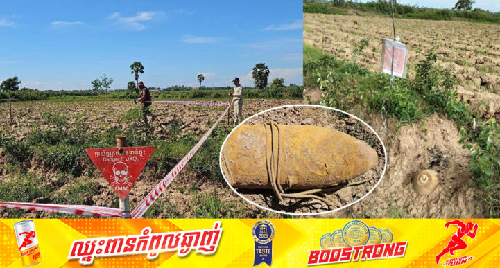 ខេត្តកណ្ដាល៖ យោងតាមការចុះផ្សាយរបស់ មជ្ឈមណ្ឌលសកម្មភាពកំចាត់មីនកម្ពុជា បានឱ្យដឹងថា នៅថ្ងៃទី១៣ ខែសីហា ឆ្នាំ២០២៤ម្សិលមិញនេះ កម្លាំងជំនាញអង្គភាពស៊ីម៉ាក់បានដោះបន្សាបនិងដឹកជញ្ជូនដោយសុវត្ថិភាពគ្រាប់បែកដែលប្រទះឃើញកប់ក្នុងដីនៃវាលស្រែស្ថិតក្នុងស្រុកកណ្តាលស្ទឹង ខេត្តកណ្តាល។ គ្រាប់បែកទម្លាក់ពីយន្តហោះនេះ ប្រភេទM117 ទម្ងន់ប្រមាណ ៣៤០គីឡូក្រាម ប្រវែងប្រមាណ ២ម៉ែត្រ ដែលបានទម្លាក់បរិមាណយ៉ាងច្រើន និងត្រូវបានទម្លាក់ដោយយន្តហោះប្រភេទB-52G ក្នុងសង្គ្រាមឥណ្ឌូចិន ៕ ប្រភព៖ មជ្ឈមណ្ឌលសកម្មភាពកំចាត់មីនកម្ពុជា – CMAC