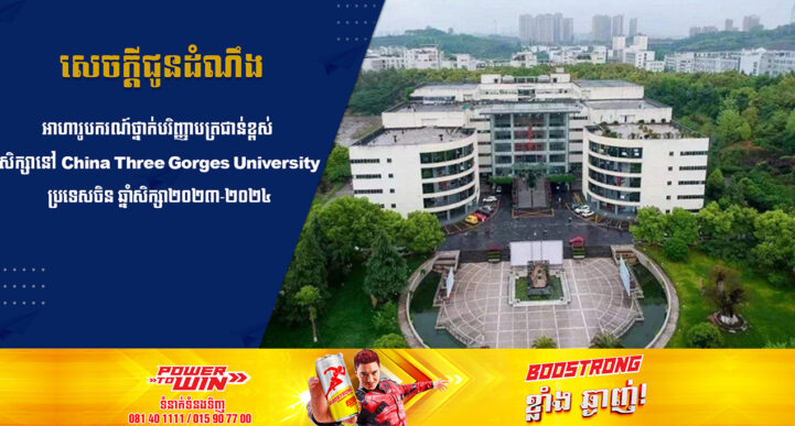 រាជធានីភ្នំពេញ៖ យោងតាមការចុះផ្សាយរបស់ ក្រសួងអប់រំ យុវជន និងកីឡា បានចេញសេចក្ដីប្រកាសអាហារូបករណ៍ថ្នាក់បរិញ្ញាបត្រជាន់ខ្ពស់ ចំនួន ៥កន្លែង ដល់និសិត្សកម្ពុជា លើមុខជំនាញ International and Regional Studies សិក្សានៅសាកលវិទ្យាល័យ China Three Gorges ខេត្ដ Hubie ប្រទេសចិន សម្រាប់ឆ្នាំសិក្សា២០២៣-២០២៤។ ក្នុងឆ្នាំ២០២៣នេះ សាកល- វិទ្យាល័យ China Three Gorges ខេត្ត Hubei នៃប្រទេសចិន សម្រេចផ្តល់អាហារូបករណ៍ថ្នាក់បរិញ្ញាបត្រជាន់ខ្ពស់ ចំនួន ៥កន្លែង