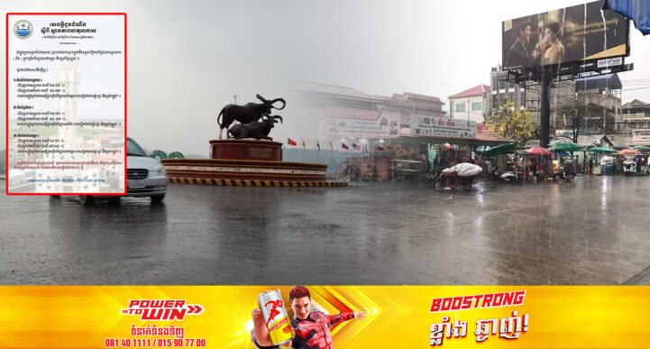 រាជធានីភ្នំពេញ៖ នៅថ្ងៃទី០៤ ខែមេសា ឆ្នាំ២០២៣ យោងតាមការចុះផ្សាយរបស់ ក្រសួងធនធានទឹក និងឧតុនិយម បានចេញសេចក្ដីជូនដំណឹង ស្ដីពីស្ថានភាពធាតុអាកាស ចាប់ថ្ងៃទី៥ ដល់ថ្ងៃទី១១ ខែមេសា ឆ្នាំ២០២៣។ អំឡុងមួយសប្ដាហ៍ខាងមុខនេះ ព្រះរាជាណាចក្រកម្ពុជានឹងទទួលឥទ្ធិពលពីជ្រលងសម្ពាធទាប (ចិន) ក្នុងកម្រិតពីខ្សោយទៅមធ្យម និងខ្យល់ប្រែប្រួល។ ស្ថានភាពបែបនេះនឹងធ្វើឲ្យ៖ ១៖ តំបន់ទំនាបកណ្តាល – សីតុណ្ហភាពអប្បបរមា មានពី ២៣-២៥ °C – សីតុណ្ហភាពអតិបរមា មានពី ៣៤-៣៧ °C – អាចមានភ្លៀងធ្លាក់ដោយអន្លើ ក្នុងកម្រិតពីខ្សោយទៅមធ្យម