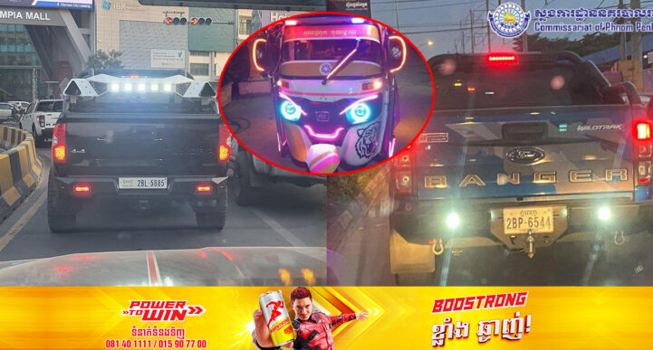 រាជធានីភ្នំពេញ៖ នៅថ្ងៃទី១៧ ខែមីនា ឆ្នាំ២០២៣ យោងតាមការចុះផ្សាយរបស់ ស្នងការដ្ឋាននគរបាលរាជធានីភ្នំពេញ បានឱ្យដឹងថា ដោយអនុវត្តតាមការណែនាំរបស់ ឯកឧត្តម ឃួង ស្រេង អភិបាល នៃ គណៈអភិបាលរាជធានីភ្នំពេញ និងបទបញ្ជារបស់ ឯកឧត្តម ឧត្តមសេនីយ៍ឯក ស ថេត អគ្គស្នងការរង និងជាស្នងការនគរបាលរាជធានីភ្នំពេញ។ សូមជម្រាបជូនដល់បងប្អូនប្រជាពលរដ្ឋដែលជាម្ចាស់យានយន្តមួយចំនួន ដែលបានបំពាក់ភ្លើងបំភ្លឺខុសបច្ចេកទេស បំពងស៊ីផ្លេសំឡេងលឺខ្លាំង ដាក់ហ្វាំងដែលបន្លឺជាសម្លេងរំខាន កែច្នៃបំពងសម្លេង (ស៊ីមាំងប្រែន) ខុសលក្ខណៈបច្ចេកទេស និងសរសេរអក្សរ ឬបិទរូបភាព មិនសមរម្យ សូមប្រញាប់ធ្វើការដក ឬ ដោះចេញជាបន្ទាន់